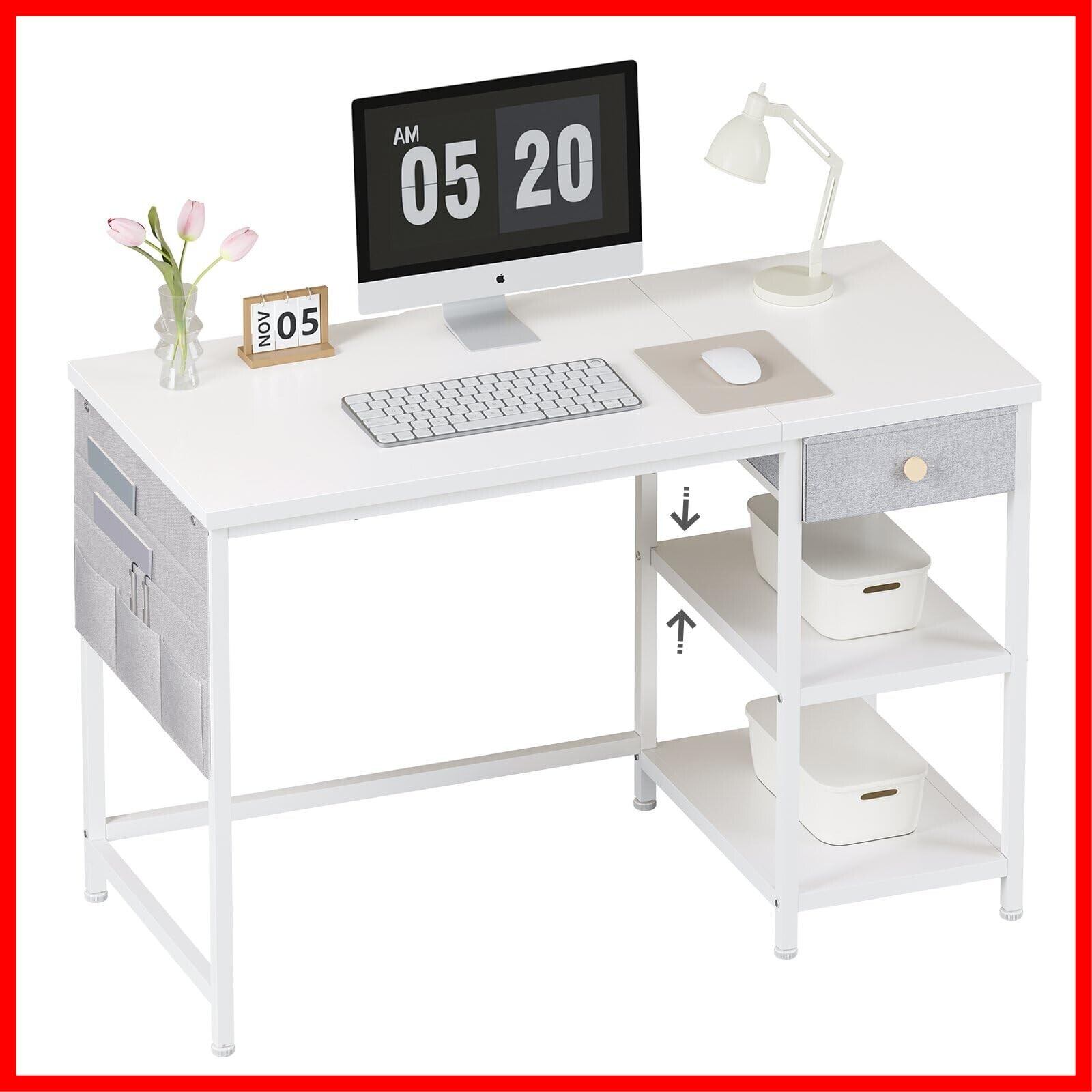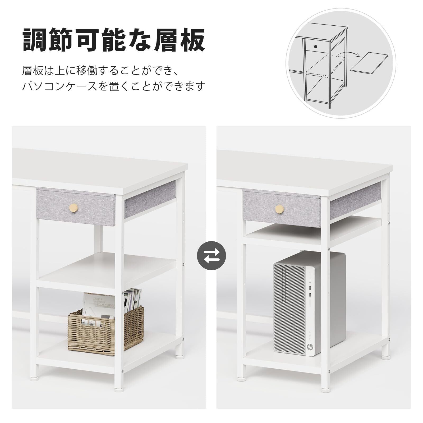 YeTom デスク 机 pcデスク パソコンデスク 勉強机 大人 つくえ ラック付きデスク 幅120cm×奥行55cm 布製引き出し付き オフィスデスク 収納ラック 収納袋付き 学習机 左右入替可 テレワーク 在宅勤務 白い