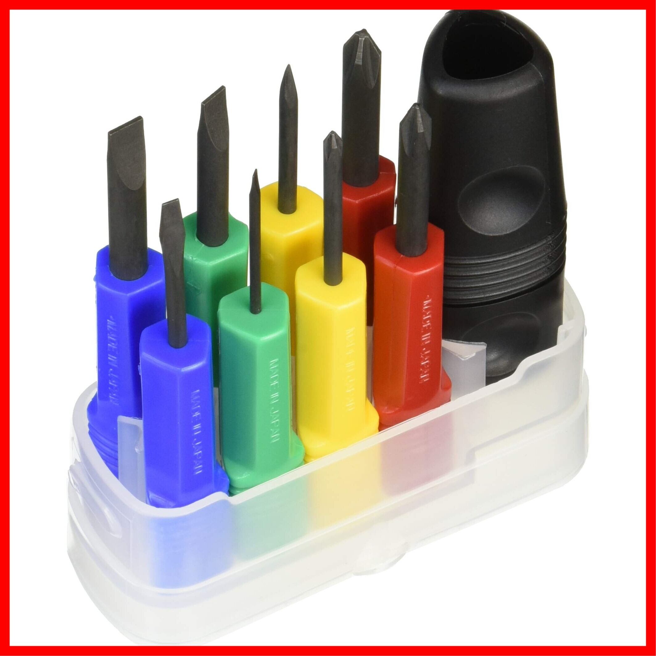 ●使用頻度の高いサイズをセット●ストレート型とT型の使い分けができる差替グリップ●バッテリーキャップ外し・ヒートン回しができるマジックコイン付●ケース底に小物が収納できるケース付●セット内容:+0/+1/+2/-1.8/-2.5/-5/-6/キリ、差替グリップ、専用ケース●マグネット:あり●包装:専用ケース