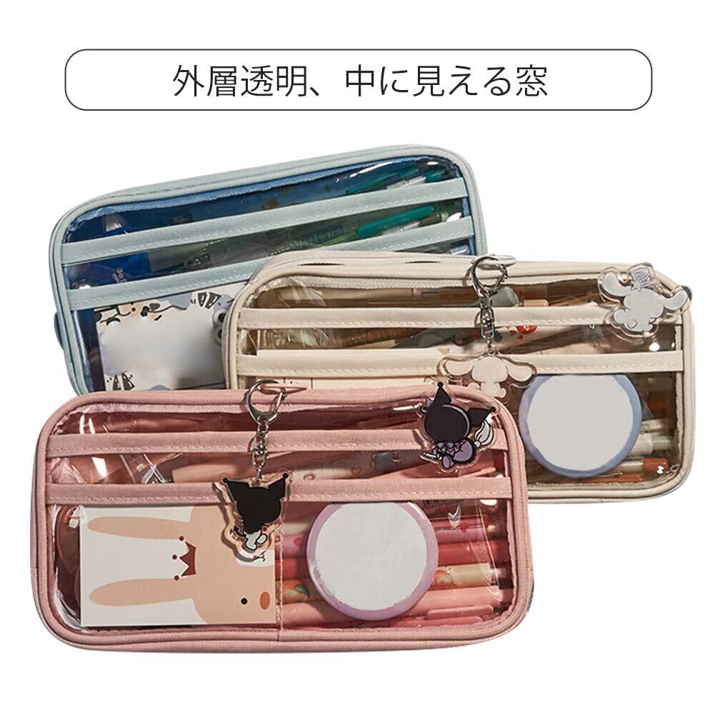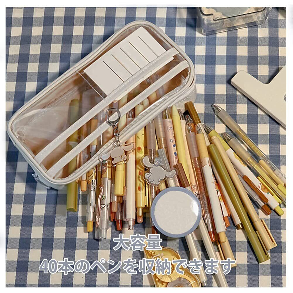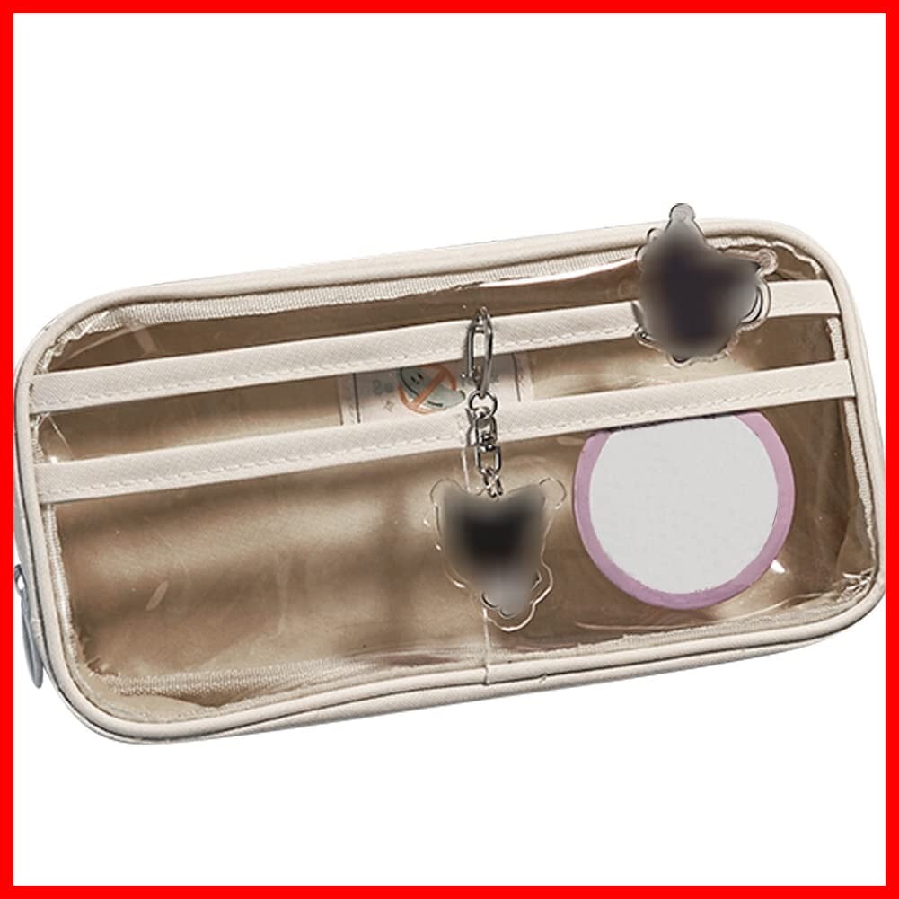 YUYAKESHI ペンケース 仕切り 痛ペンポーチ 透明 筆入れ ビニール 大容量 小物入れ 缶バッジ入れ 筆箱 クリアケース 透明ポーチ(ベージュ)