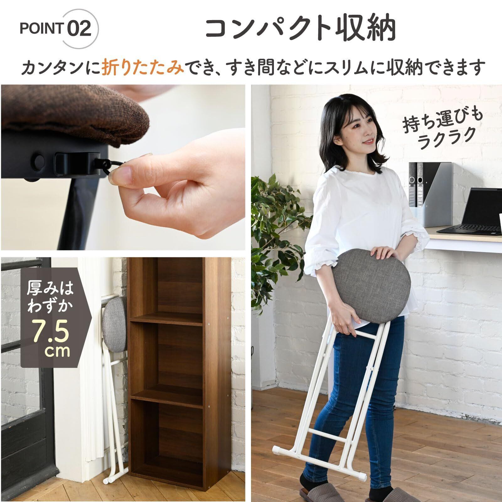 【折りたたみ可能】スリムに折り畳みができるので、使わないときはすき間に収納しておけます。
