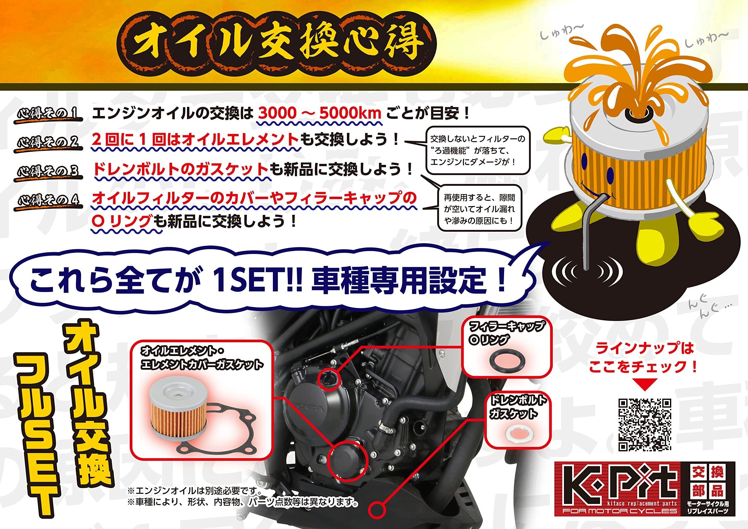 キタコ(KITACO) オイル交換フルセット K-PIT モンキー125(JB03/JB05) ダックス125(JB04/JB06) グロム(JC92) CT125ハンターカブ(JA65)等 70-390-01040