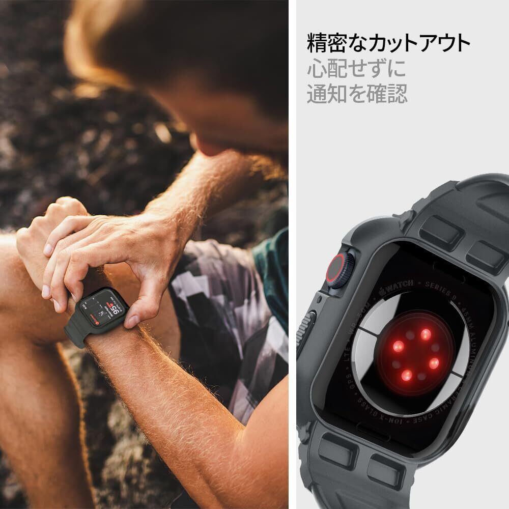 Spigen Apple Watch バンド 一体型 Apple Watch バンド ケース カバー 耐衝撃 PC TPU 二重構造 スポーツバンド 落下 衝撃 吸収 耐久性 傷防止 ラギッド・アーマー・プロ ACS07387 (ダーク・グレー)