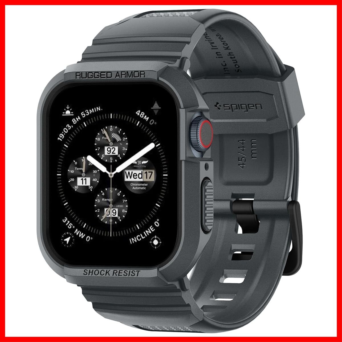 Apple Watch バンド 45mm | 44mm 一体型 ケース カバー 耐衝撃 PC TPU 二重構造 スポーツバンド 落下 衝撃 吸収 耐久性 傷防止 【 Series 9 / 8 / SE 2 /Series 7 / SE/Series 6 / Series 5 / Series 4 対応 】 ラギッド・アーマー プロ ACS07386 (ダーク・グレー) | hananoki