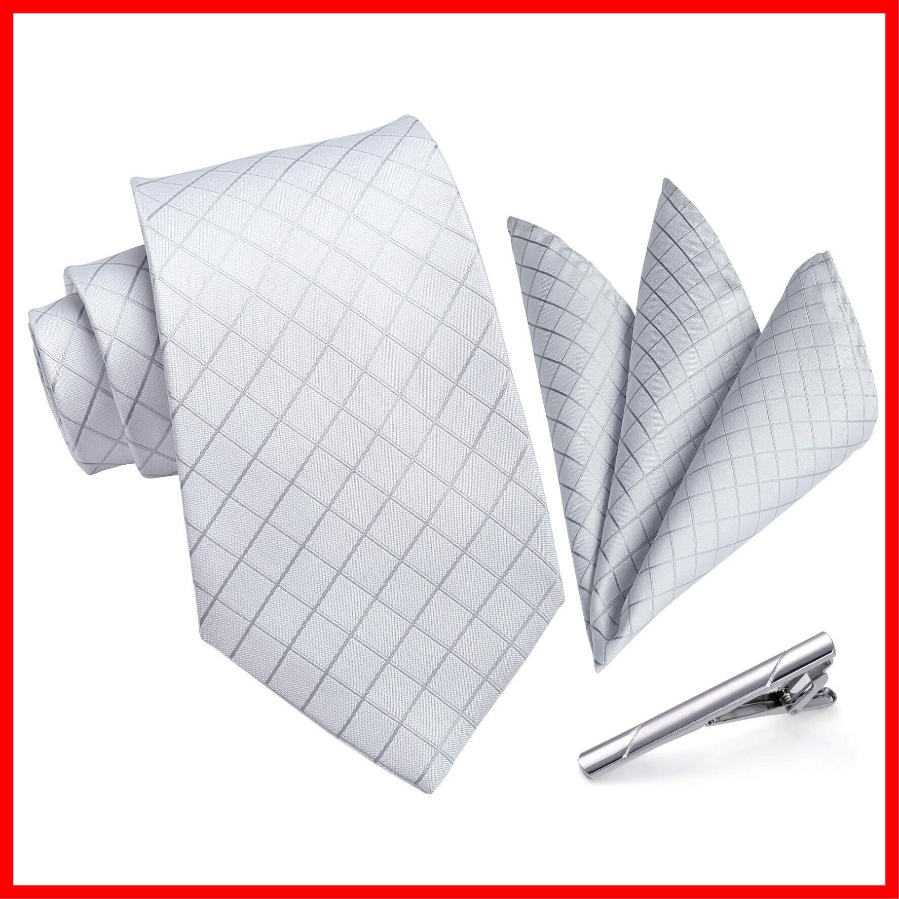 [HISDERN] A3-01 結婚式 シルバー ネクタイ チーフ タイクリップ 3点セット 幅8.5cm メンズ ブランド ギフト ボックス付き 冠婚葬祭 婚礼用 礼服用 紳士用 新郎 12柄
