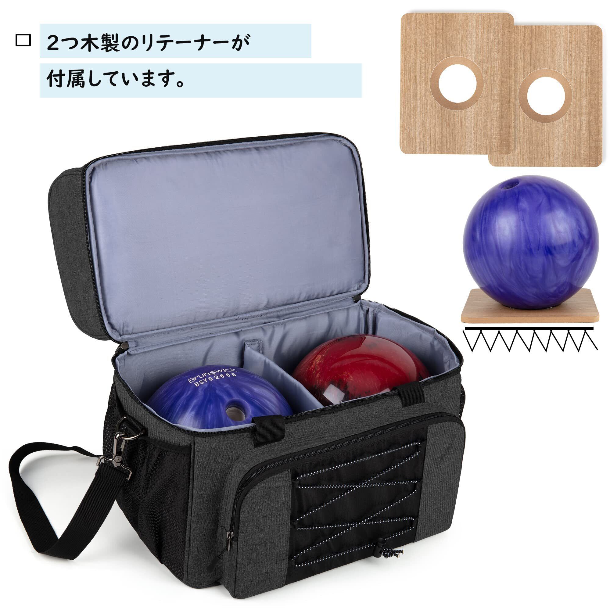 DSLEAF ボウリング バッグ 2個用 ボーリングバック シューズ収納付き