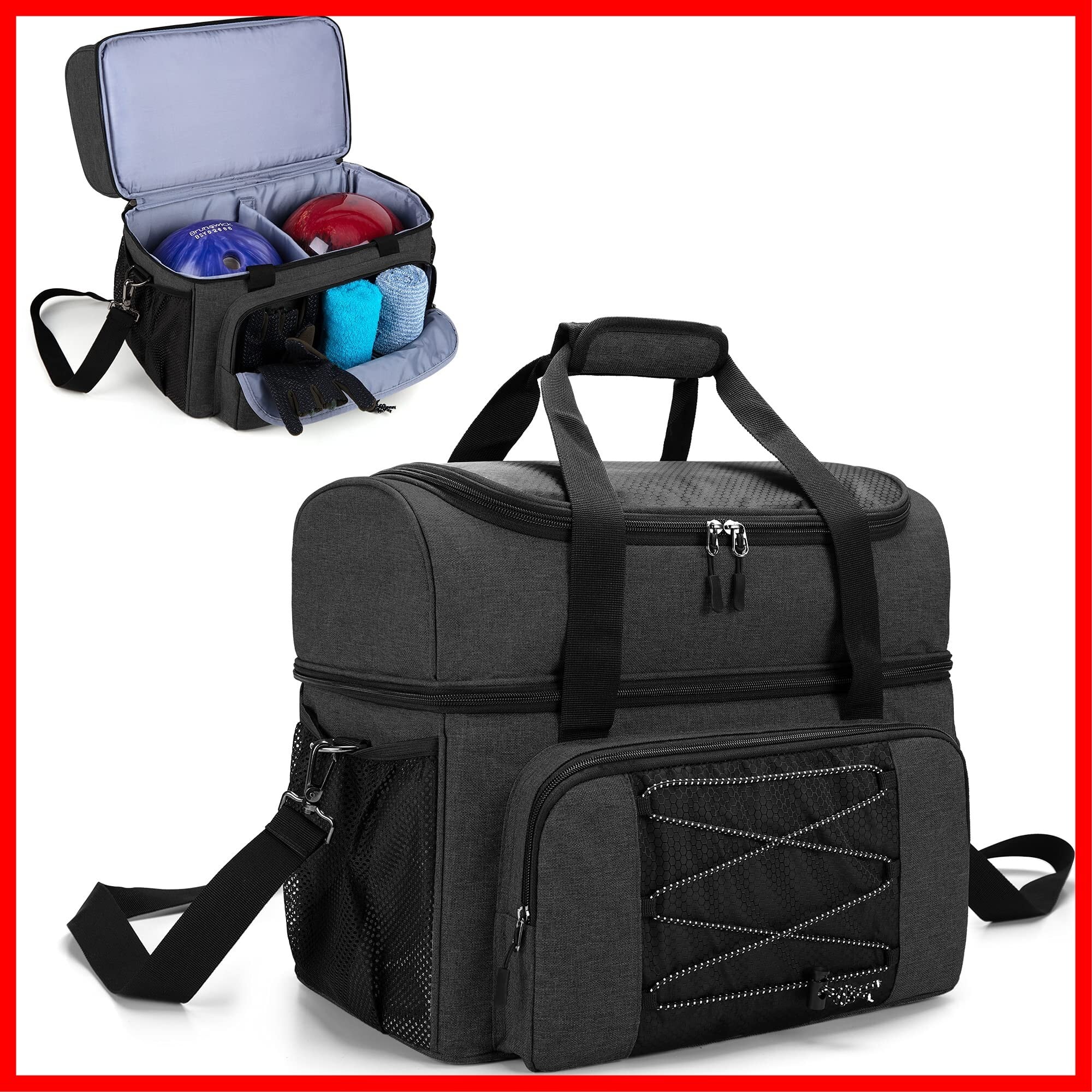 収納力抜群:ボウリングバッグは、10ピンボウリングボール2個、シューズ、タオル、ウォーターボトルなど、すべてのボウリング機器を収納するのに十分な大きさです。