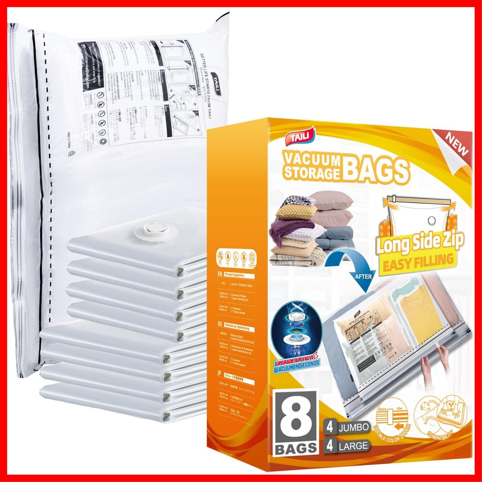 TAILI 真空圧縮袋 布団圧縮袋 横型 衣類 あっしゅく袋 チャック付き整理パックふとん 掃除機対応 防塵防湿 カビ ダニ対策 羽毛布団 毛布 ぬいぐるみ収納 家庭用 引越し 旅行 出張 衣替え 特大/大サイズ 8枚セット 透明