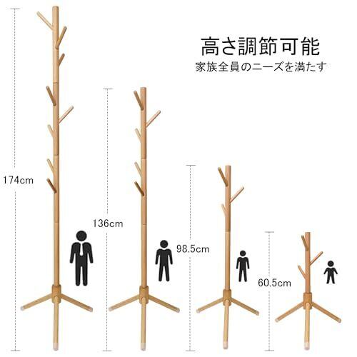 【天然木の質感】 材料は、柔らかい松ではなく、より高価な硬くて滑らかなブナです。天然の木を加工して出来たポールハンガーですので、表面は手触り良く滑らかな仕上がりで、丈夫である。環境に優しい塗装、ホルムアルデヒドなし。樹木の外観は自然の美しさを持っています。