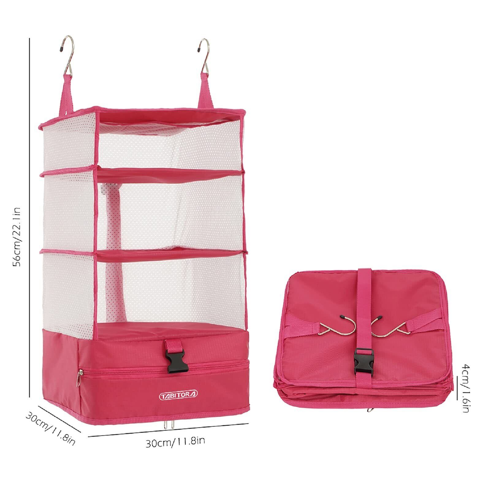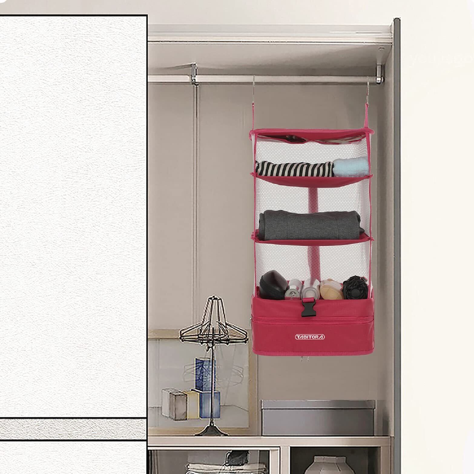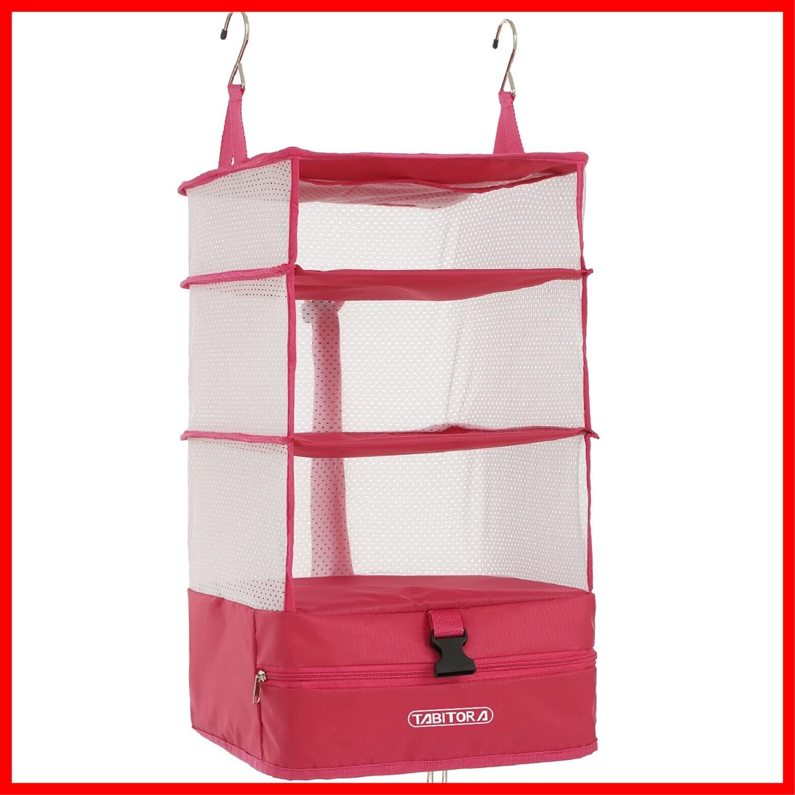 TABITORA(タビトラ) クローゼット吊り下げ収納 インナーバッグ 衣類ラック 収納 旅行 出張 クローゼット 収納ボックス 吊り下げ 省スペース 大容量 衣装ケース 4段 取付簡単 折り畳み式 ローズ L | hananoki