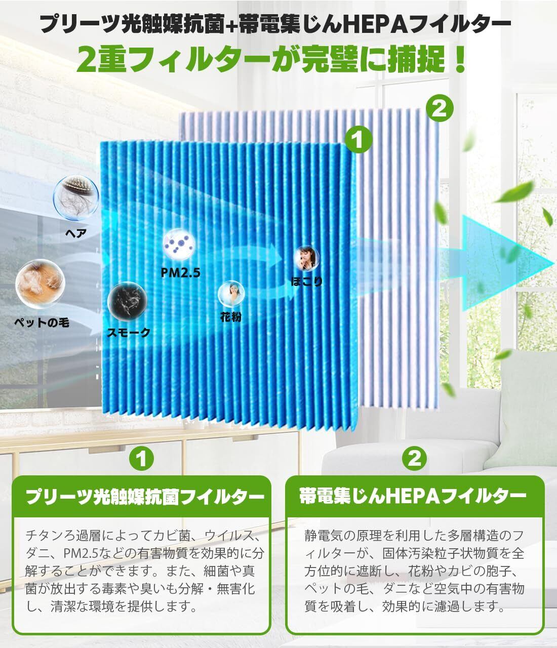 【濾過効果アップ】2レベルのフィルタリングで、微小な粒子、ホコリ、花粉などを吸着し、部屋の空気を綺麗にフィルタリングでき、濾過効果をアップし、赤ちゃんでも安 心してご利用いただけます