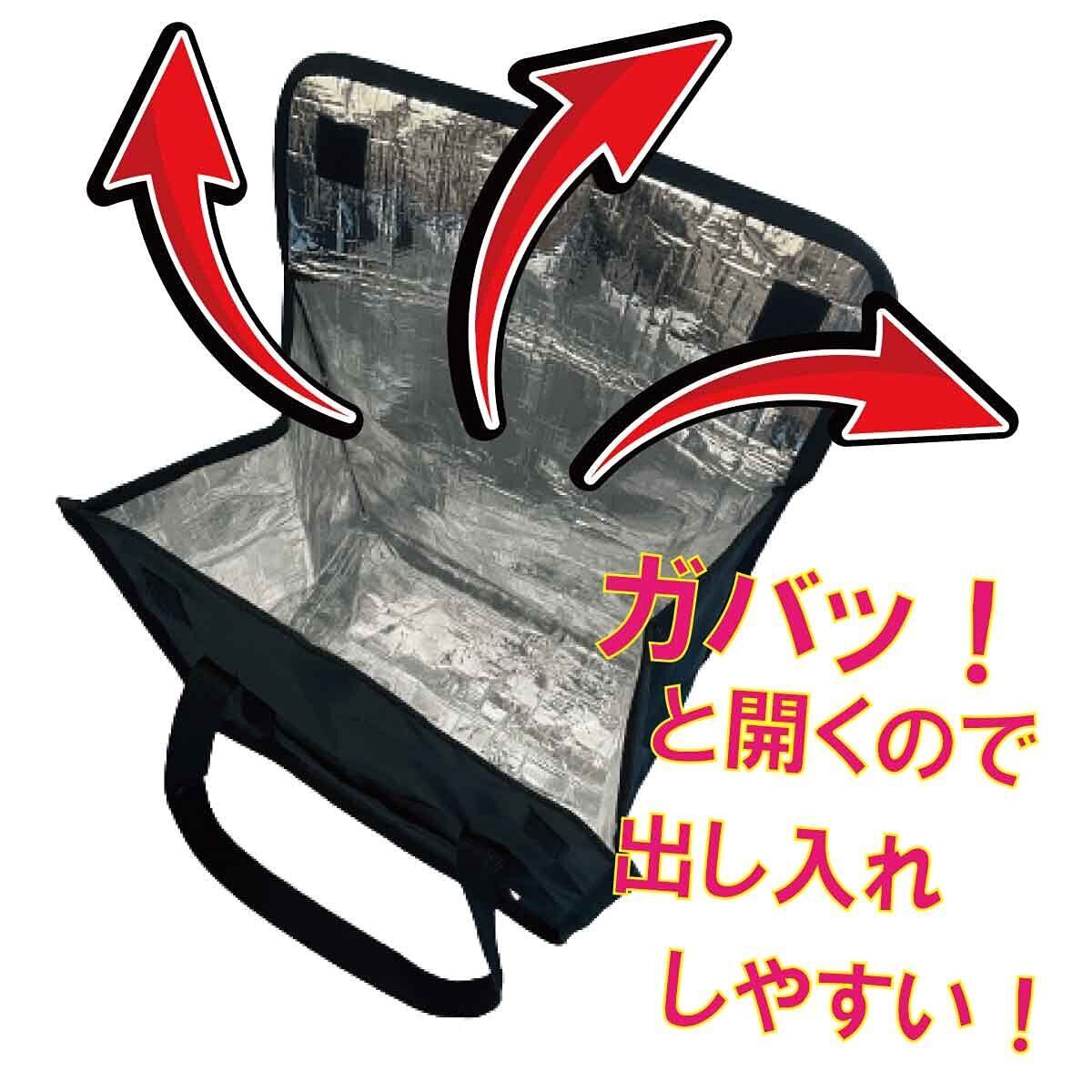 内側はアルミ加工の生地を使用しているので水漏れしにくく、開け閉めしやすいマジックテープデザイン。自転車のカゴなどに入れてもOK!