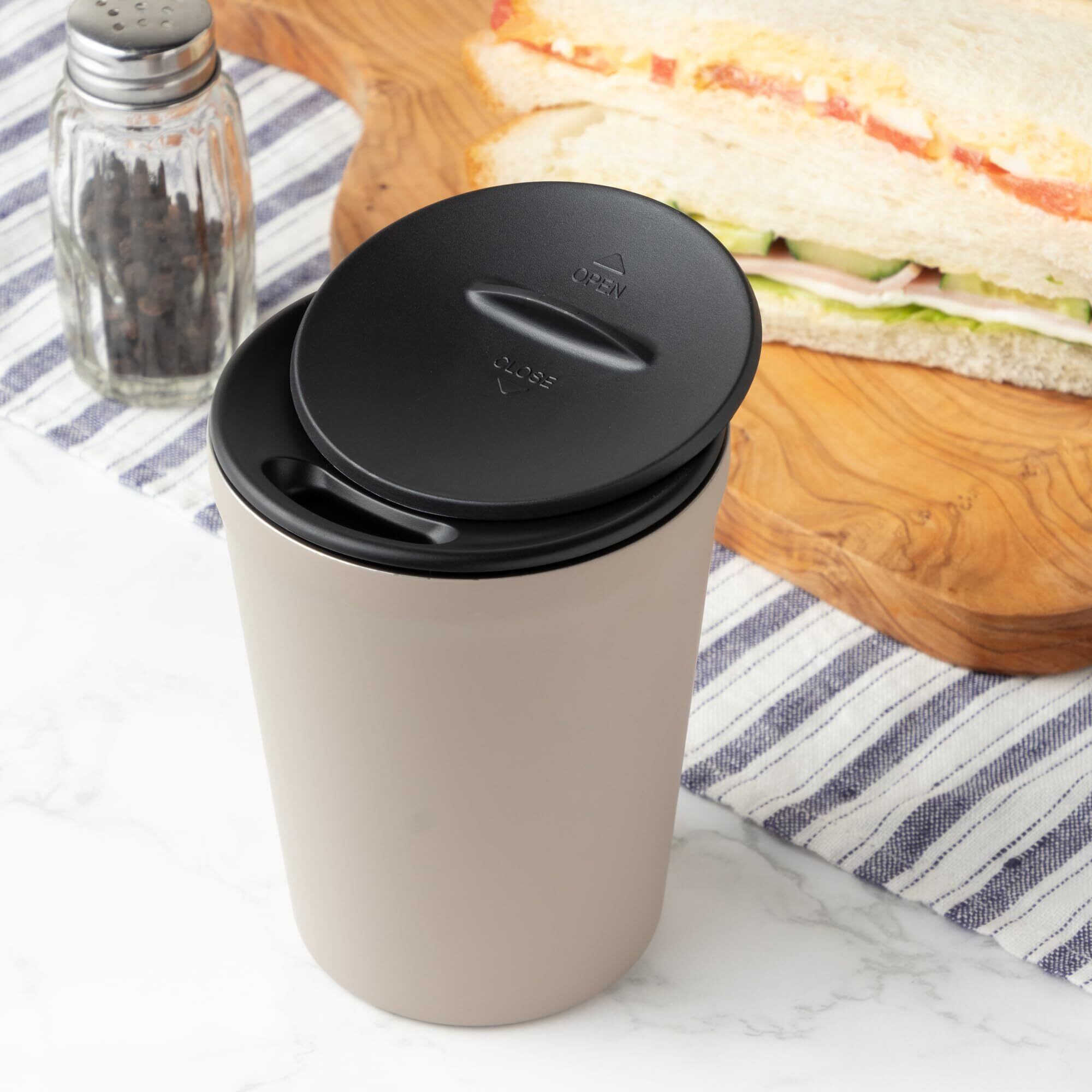 スライド式の蓋で結露が落ちず、スムーズにドリンクを楽しむことができます。