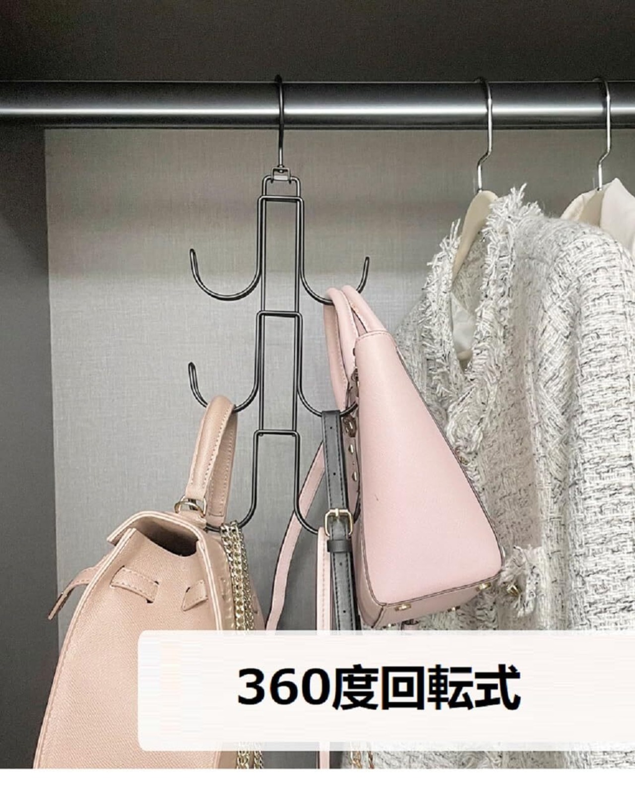 360度回転できる:毎本には6つのラックあります。フックの上部分はは360度回転できます。かばんの型崩れ防止できます。