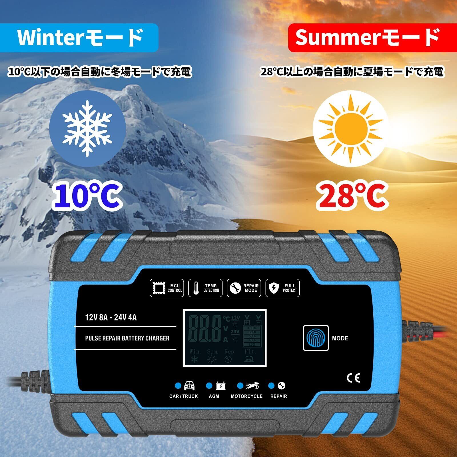 夏場モード&冬場モード:使用環境により、自動に適当なモードで充電を行い、 10℃以下の場合は冬場モード、28℃以上の場合は夏場モード、バッテリーに優しいでしょ。