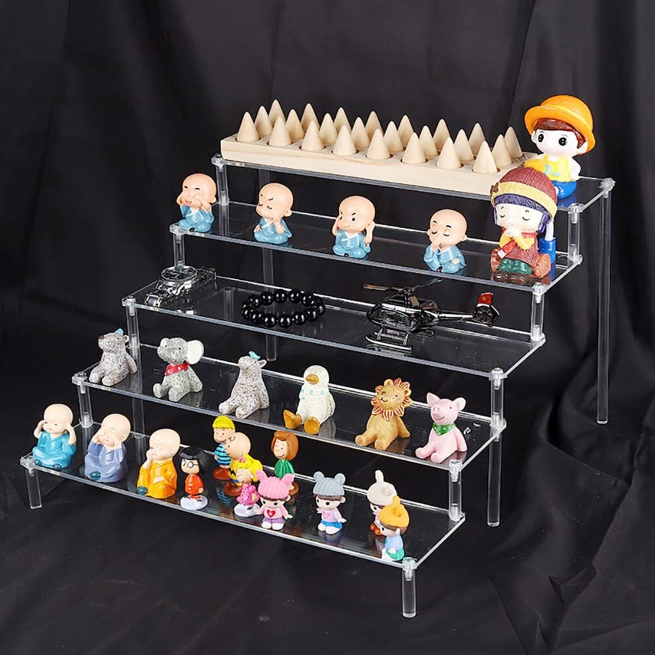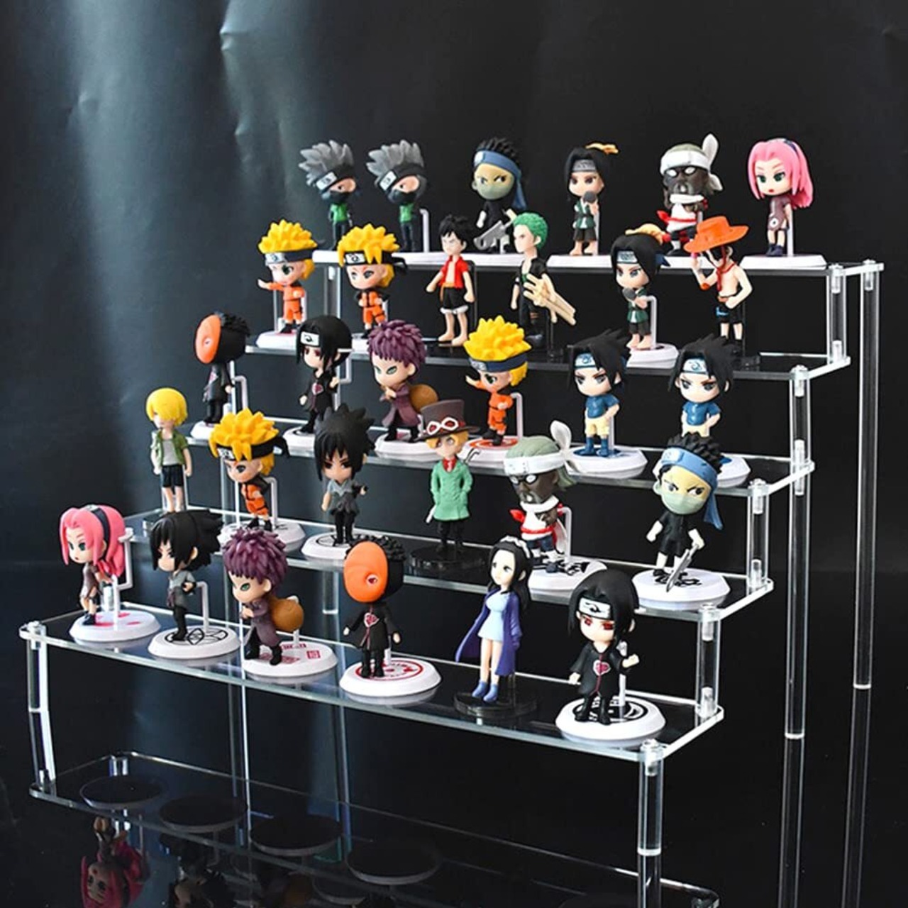【材質】-アクリル材質で作られたキャラクターアニメ展示台で、5段階段式の展示台で、小物を十分に見せることができ、指紋防止手袋をプレゼントします×1足、清潔布×1枚、傷なしテープ×40粒。