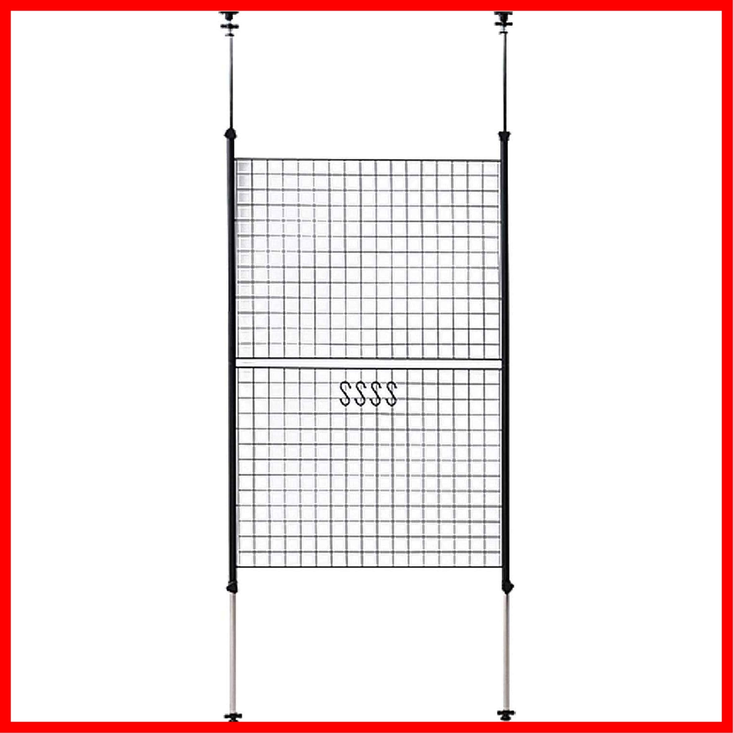 山善(YAMAZEN) 突っ張り パーテーション (ワイヤータイプ) 幅90×奥行5×高さ166.5-295.5cm (フック4個付き) 壁掛け 収納 壁面収納 天井 間仕切り 組立品 ブラック SP-90(MBK) | hananoki