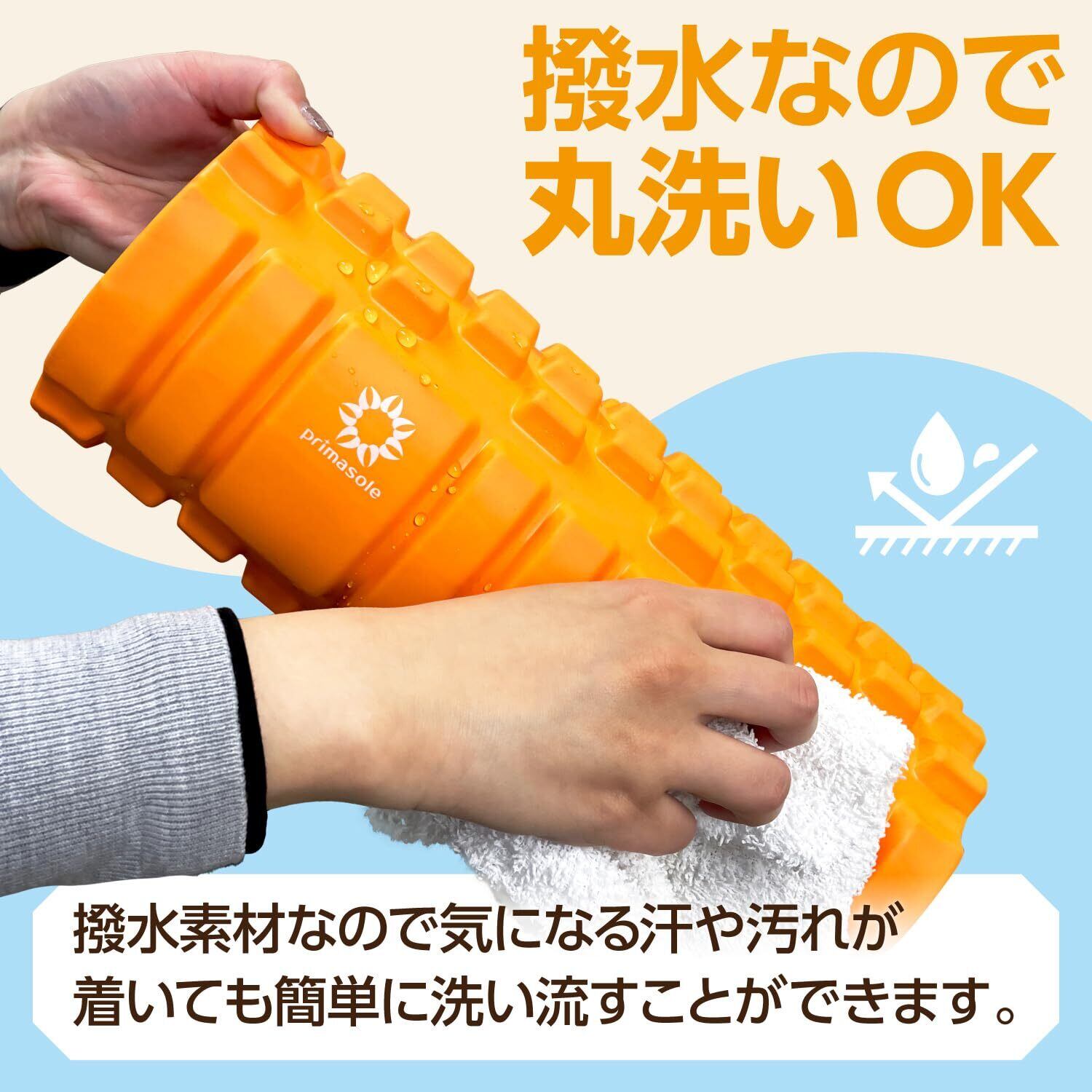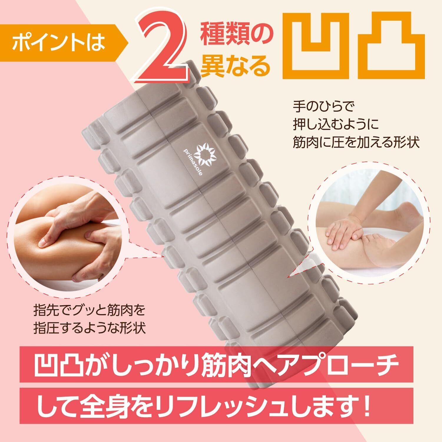 プリマソーレのフォームローラーは表面に2種類の凹凸を配置しました