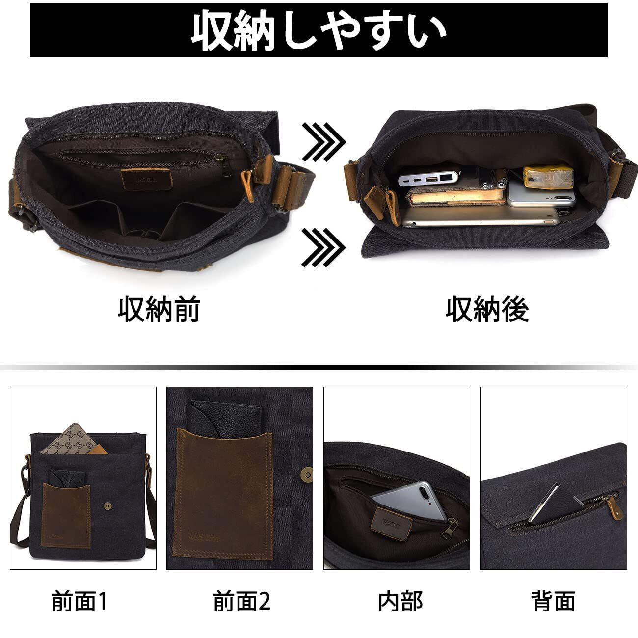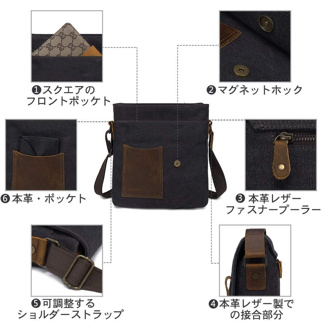 [Vaschy] 帆布 ショルダーバッグ メンズ 縦型 メッセンジャーバッグ 斜め掛けバッグ ビジネスバッグ 通学 通勤 アウトドア