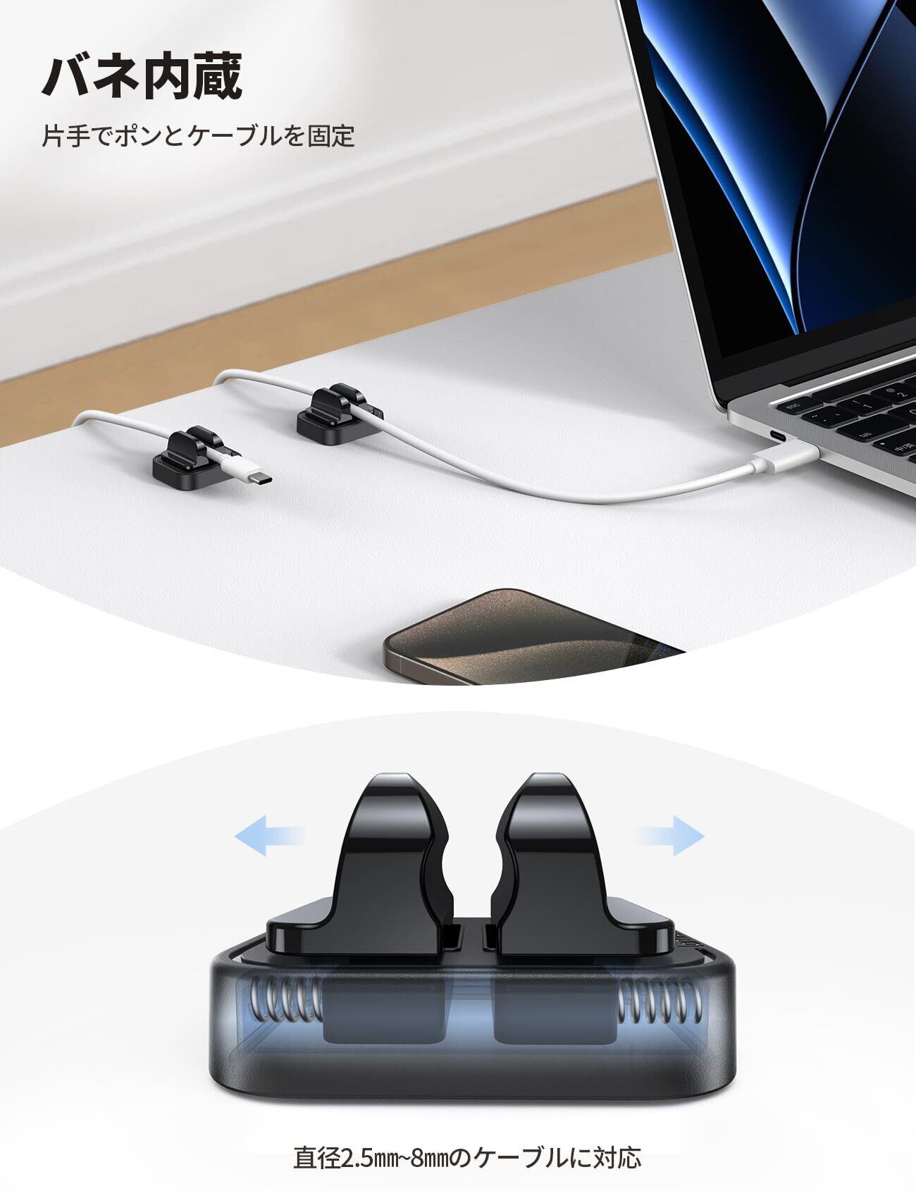 【収納対策】USBケーブルや充電ケーブルなどの紛失や落下を防ぎますので、ケーブルを使用しない時でもデスクの上にケーブルが落ちません。乱れたデータケーブル、ヘットフォンケーブル、電源コードに別れを告げます。机上にケーブルのごちゃごちゃと困っている方にお勧めします。
