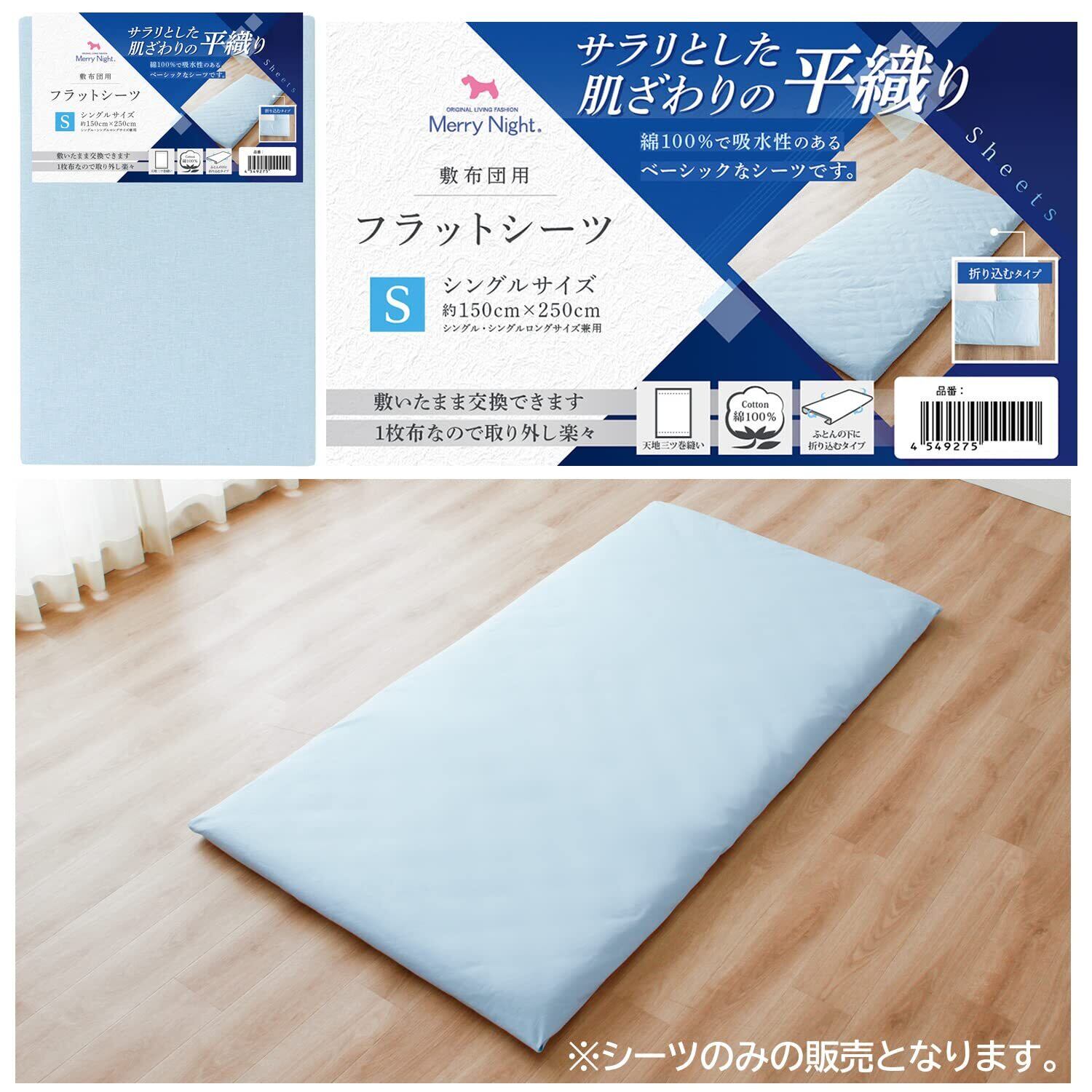 メリーナイト シーツ フラットシーツ 平織生地 ブルー 敷布団用 シングル 約150×250cm 綿100% ベーシック生地 サラリとした肌ざわり オールシーズン 洗える 372001-76