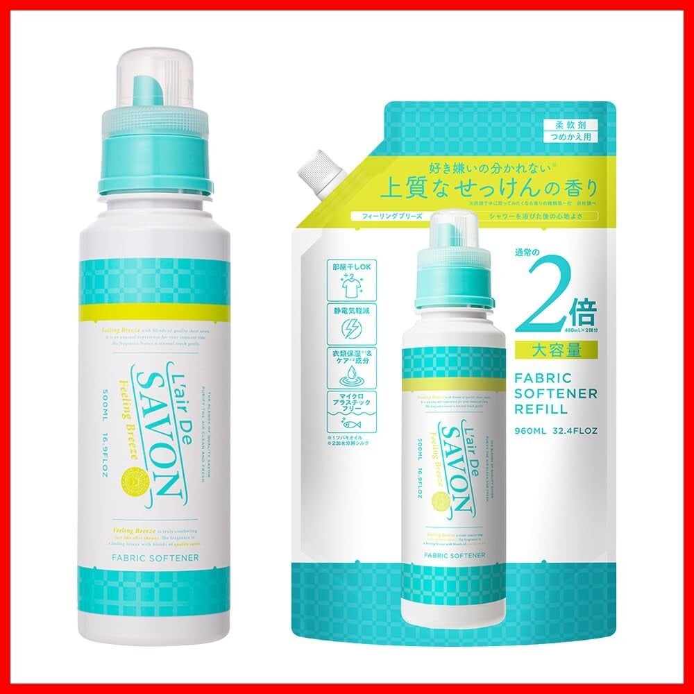 L'air De SAVON(レールデュサボン) レールデュサボン 液体 柔軟剤 フィーリングブリーズ 500ml×960ml 大容量 詰替え せっけん