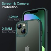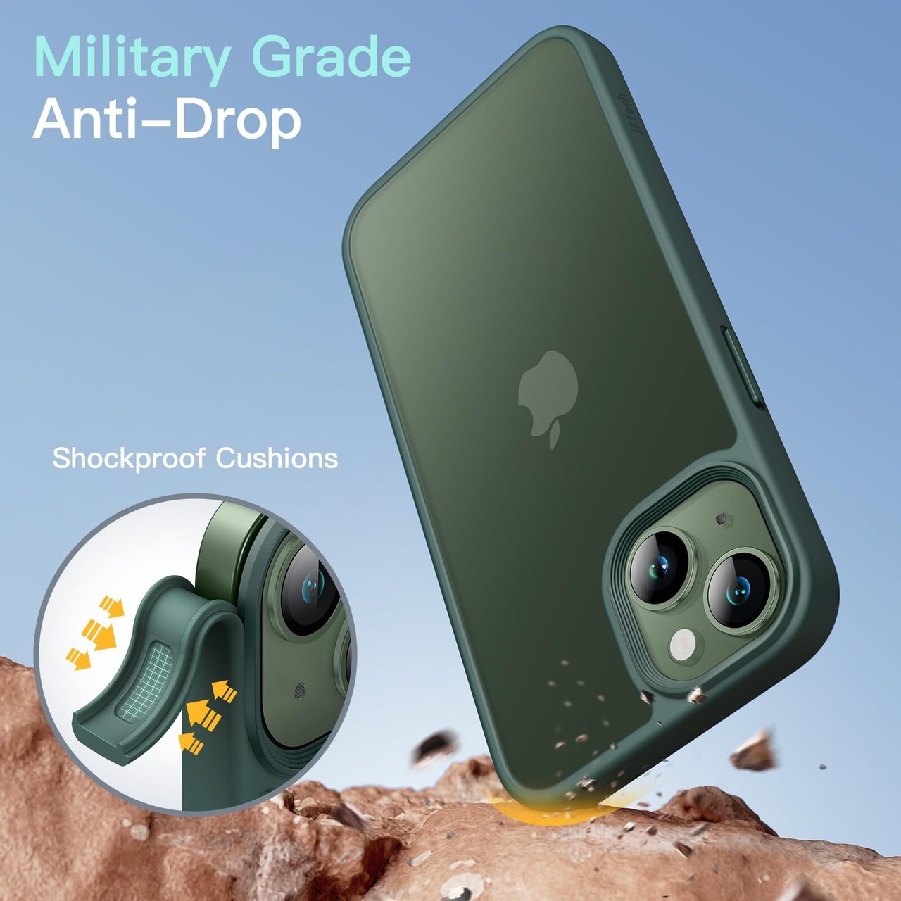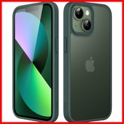 JETech マットケース iPhone 13 Mini 5.4インチ 耐衝撃性ミリタリーグレードの落下防止 つや消しの半透明の背面電話カバー 指紋防止 (濃い緑色)