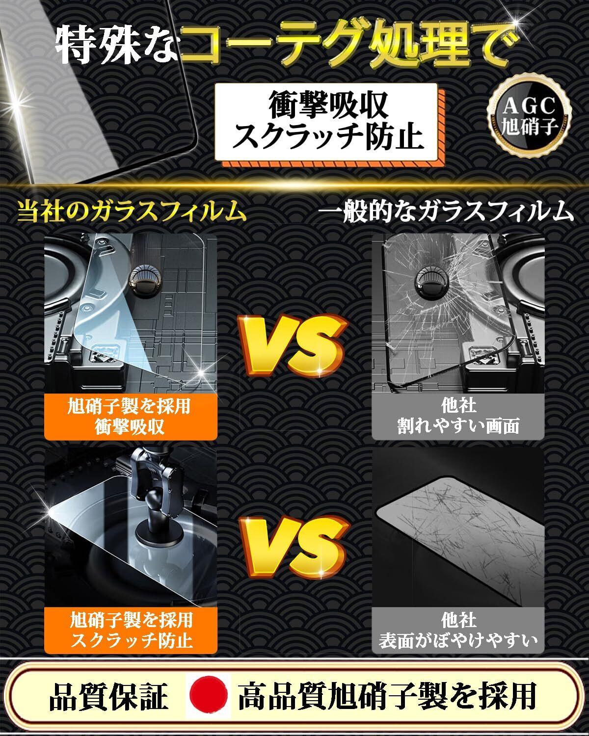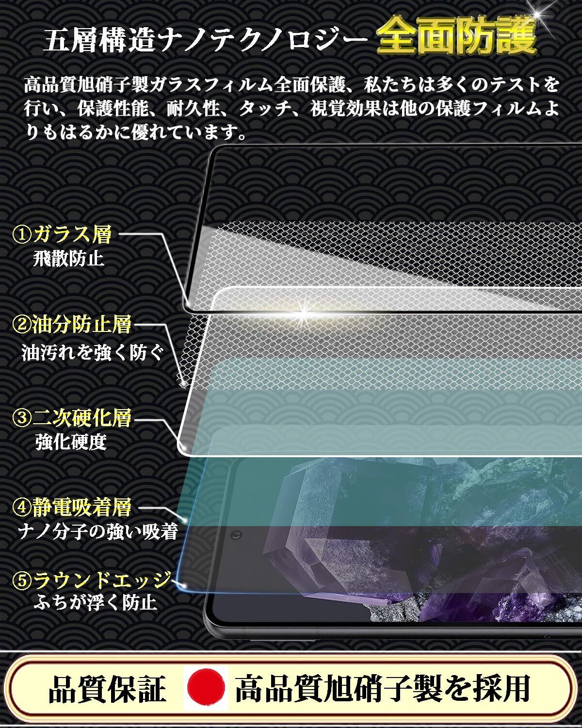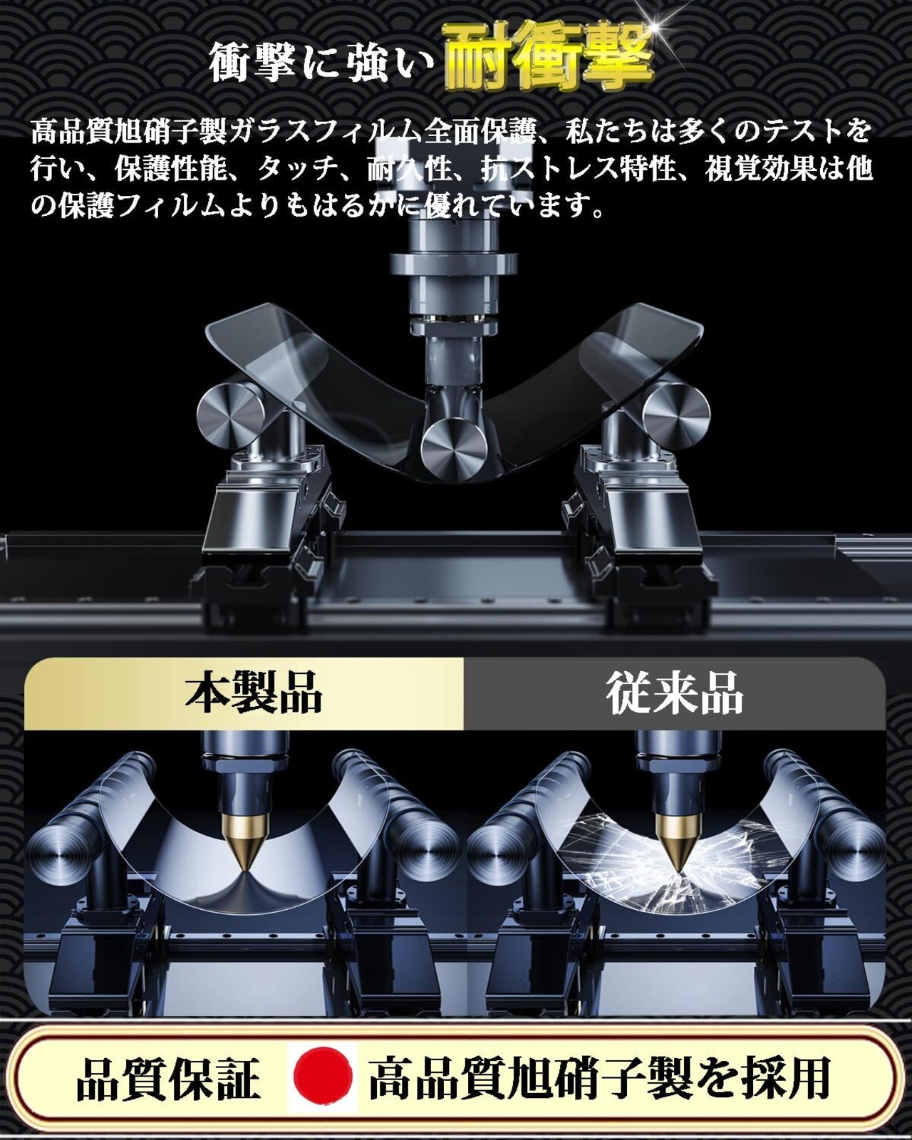 【表面硬度9H!飛散防止】日本製素材旭硝子製を採用しております、高品質な素材で衝撃を緩和し画面の破損を最低限まで抑えます。9H硬度で、ハードコーティング技術により、衝撃を緩和し画面の破損を最低限まで抑え、すり傷や指紋からもスクリーンをしっかりと保護します。