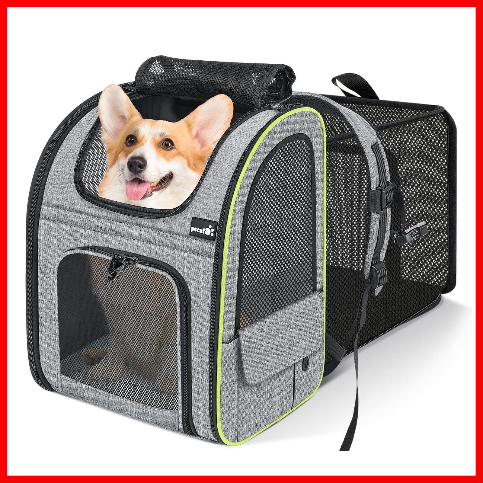 ペキュート Pecute ペットキャリー リュック 猫 キャリーバッグ ペット 犬 猫 リュック 通気性 拡張可能 2WAY バッグ 猫 キャリーバッグ 折り畳み お出かけ ドライブ 旅行 通院 災害避難用ペットバッグ グレー XL
