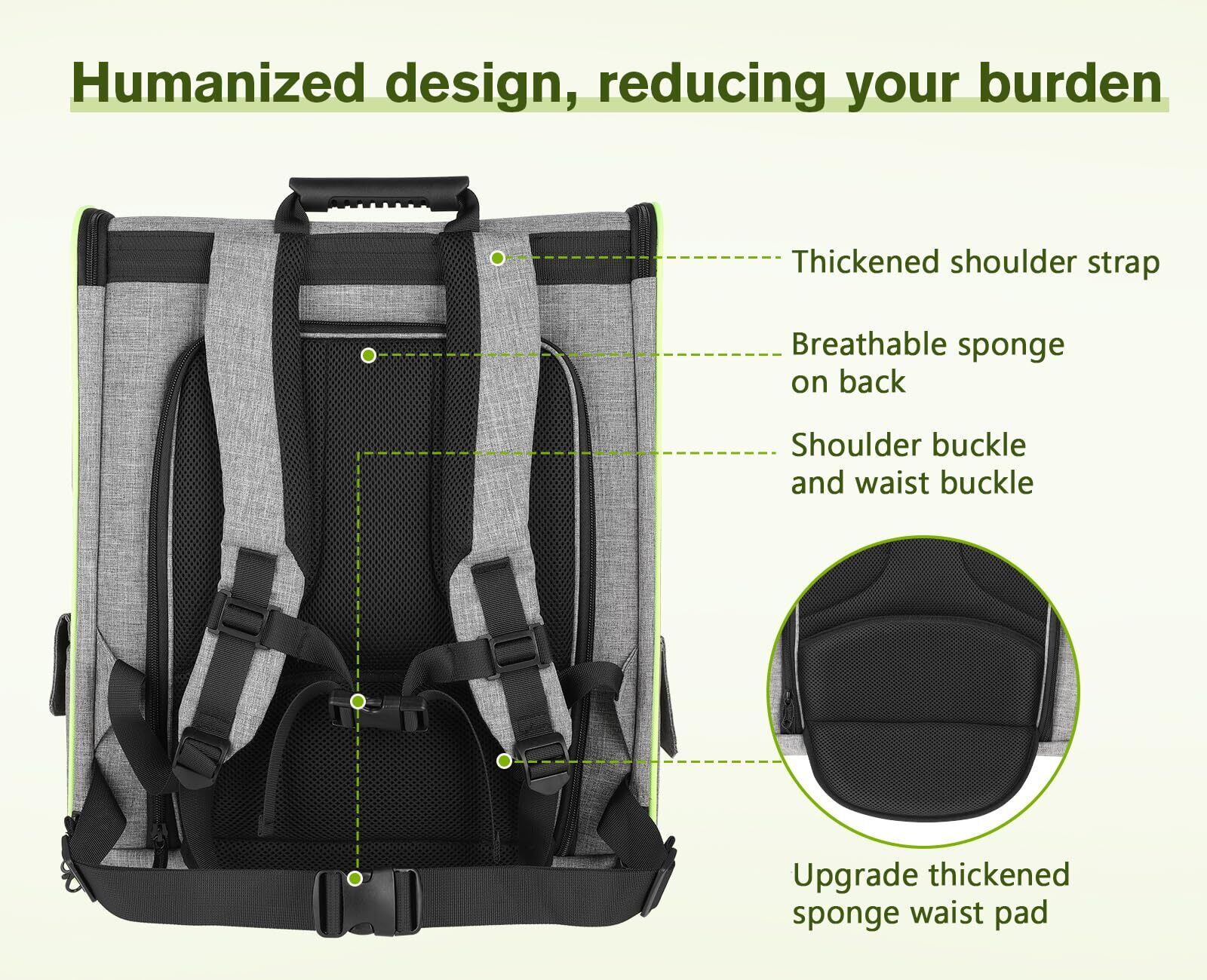 【持ち運びが快適】バックパックの広がるショルダーストラップは、負荷を軽減し、クッション入りのバックが支援と快適さを提供します。胸部と腹部の2つの調整可能なバックルが、バックパックを安定化し、揺れを減らし、ペットの安全性を確保します。パッケージ重量: 2.08kg
