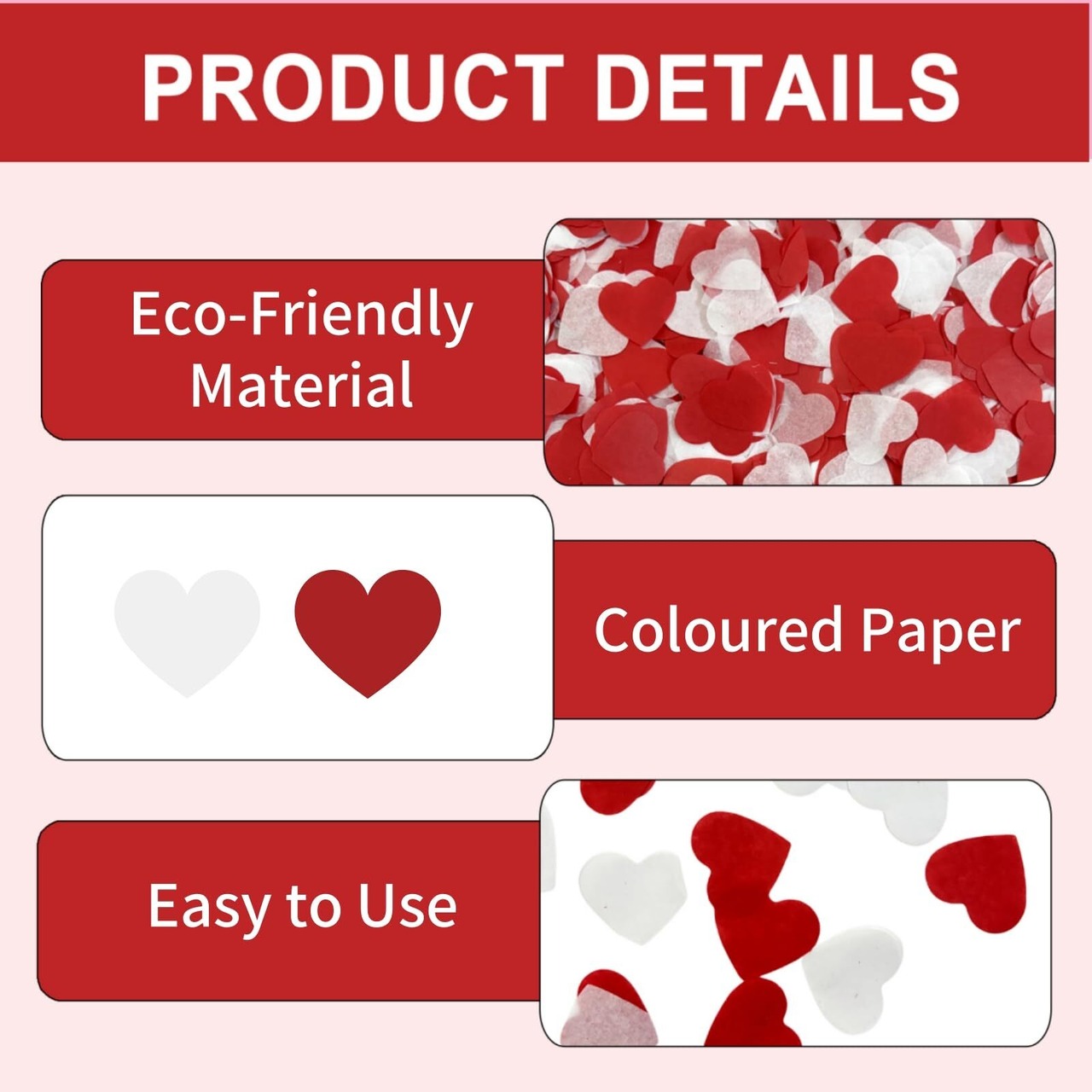 MANJIAMEI ハート型 紙吹雪 結婚式 パーティー 誕生日 4000枚 桜吹雪 プロポーズ お祝い パーティー用飾り 撮影道具 演出小物 2色 40g 直径2.5㎝(レッド+ホワイト)