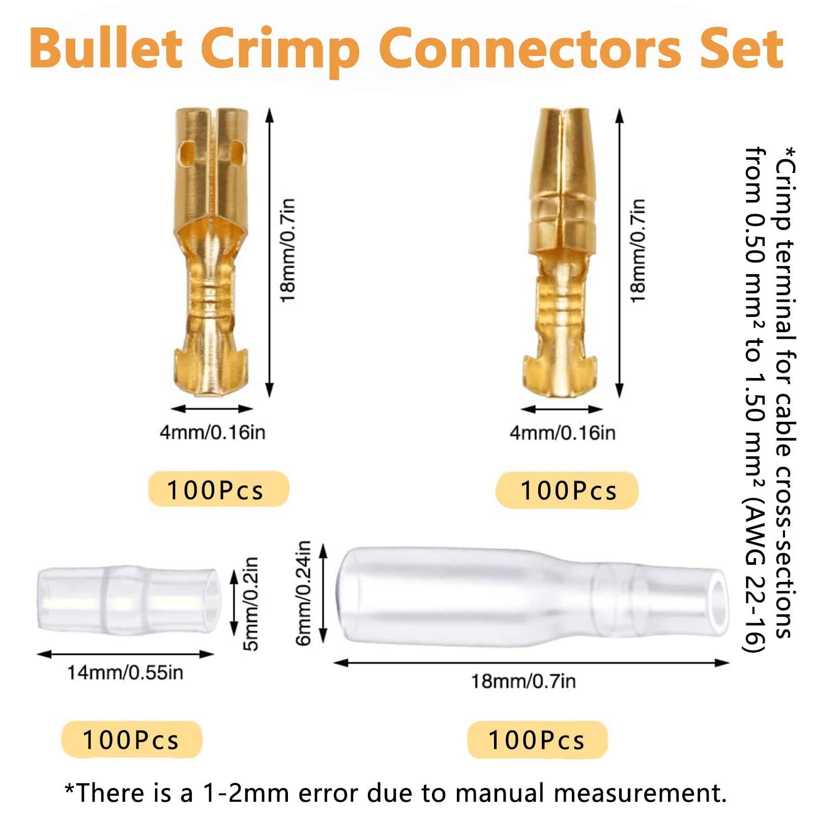 ギボシ端子セット 400個 金色 ギボシ ターミナル 圧着端子 オス メス 絶縁スリーブ カバー付き 配線接続 3.9mm CA104 圧着 コネクター 自動車 バイク スピーカー 0.5〜2スケア ケーブル