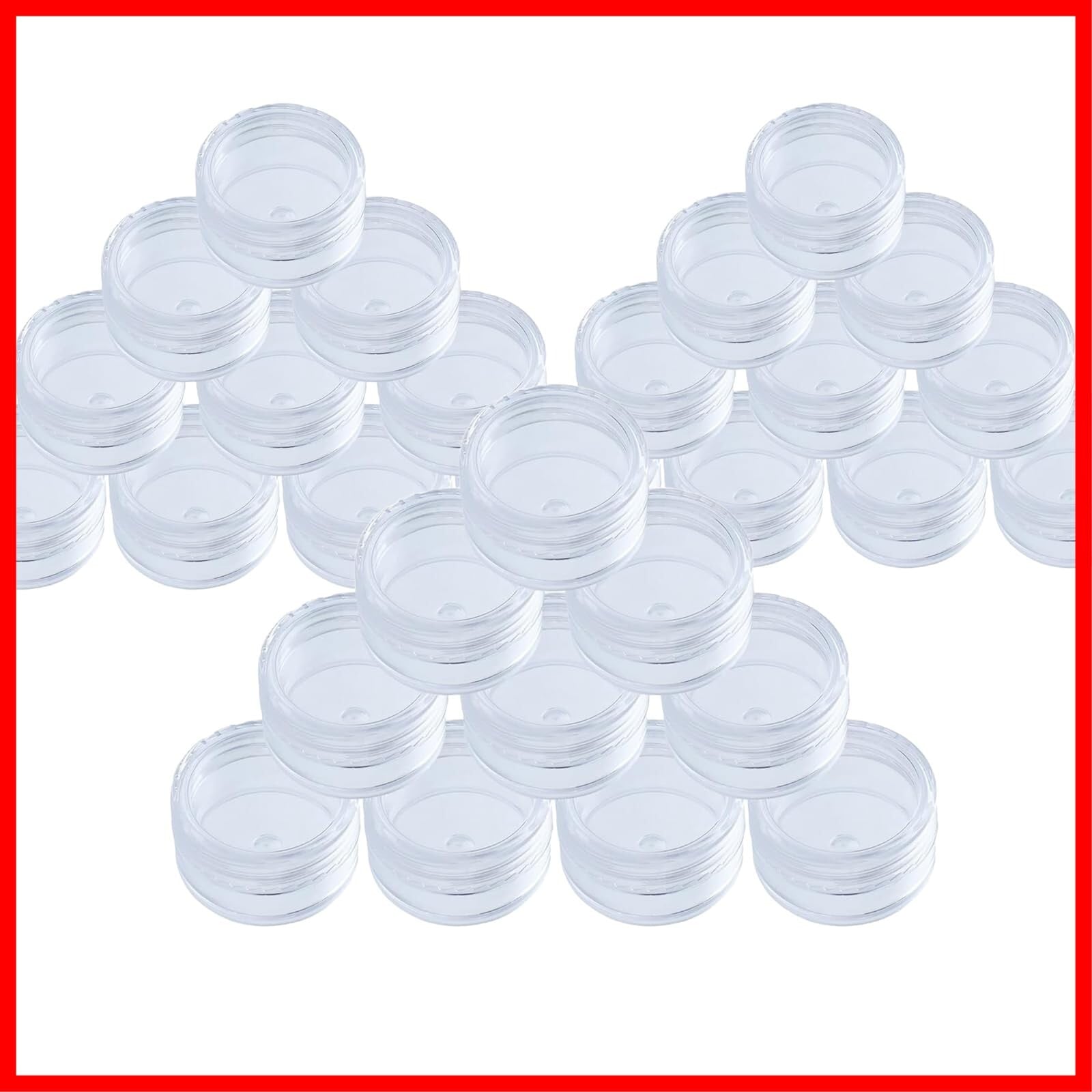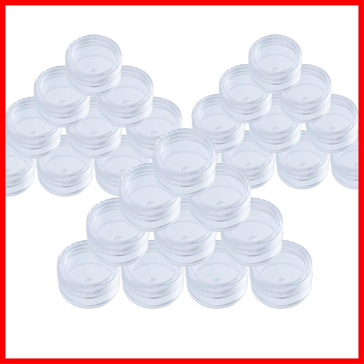【パッケージ內容】30個セットプラスティック透明収納ケース(蓋つき)。サイズ:直径:30mm、高さ:16.5mm。内容量:5ml。