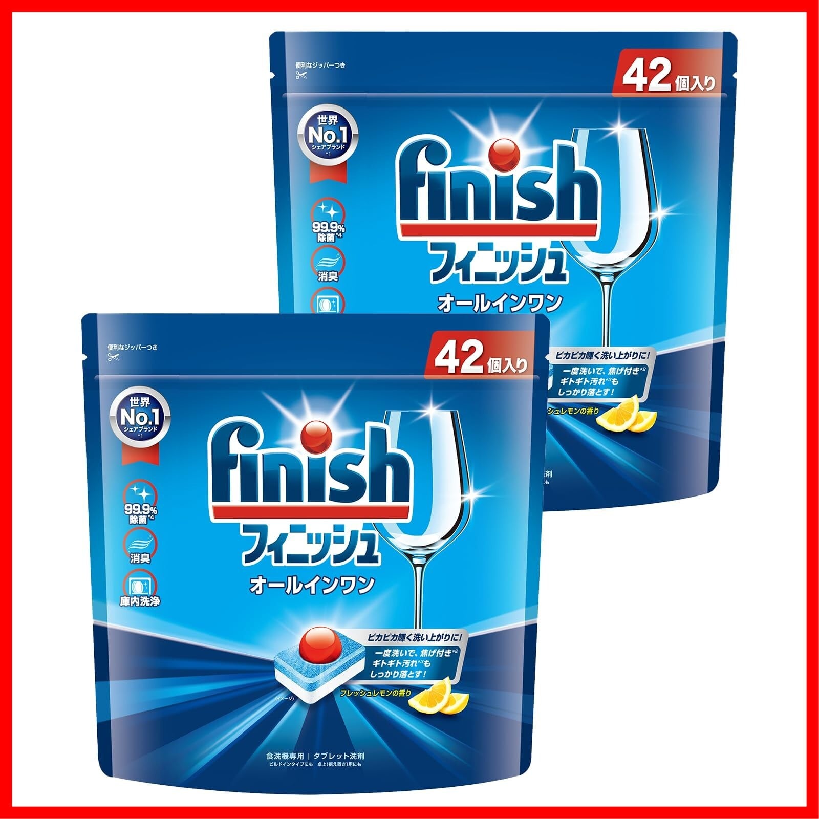 Finish 【まとめ買い】フィニッシュ 食洗機 洗剤 オールインワン プレミアム パワーボールキューブ 42個入 ×2袋