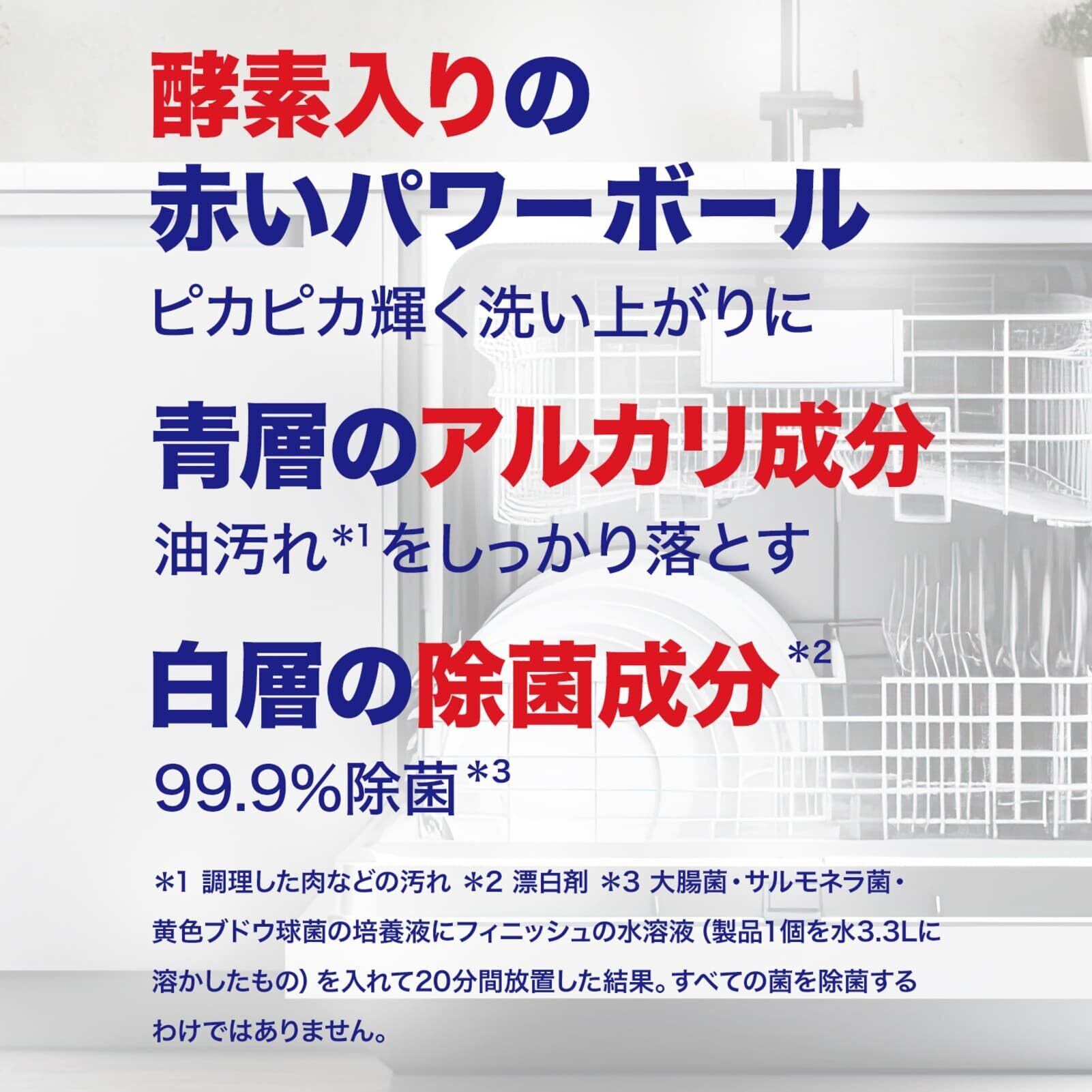 ●酵素入りの赤いパワーボール。ピカピカ輝く洗い上がりに。