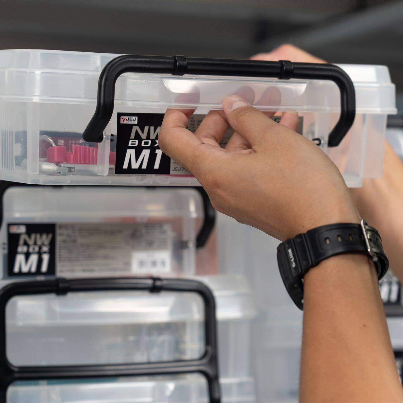 JEJアステージ 収納ボックス 日本製 小物収納 工具収納 仕切版付き NWボックスM-1 防災 [幅29.5×奥行44×高さ8.4cm]