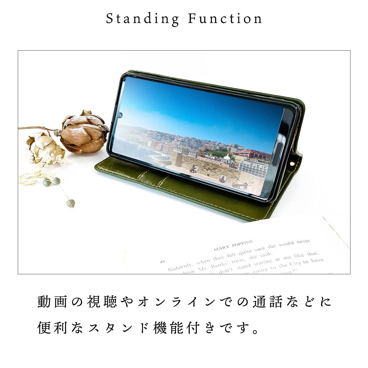 【動画視聴に便利なスタンド機能付き】お好みの角度に変えることができ動画鑑賞や読書が楽しめます。