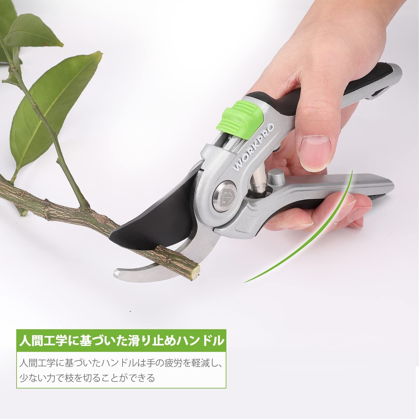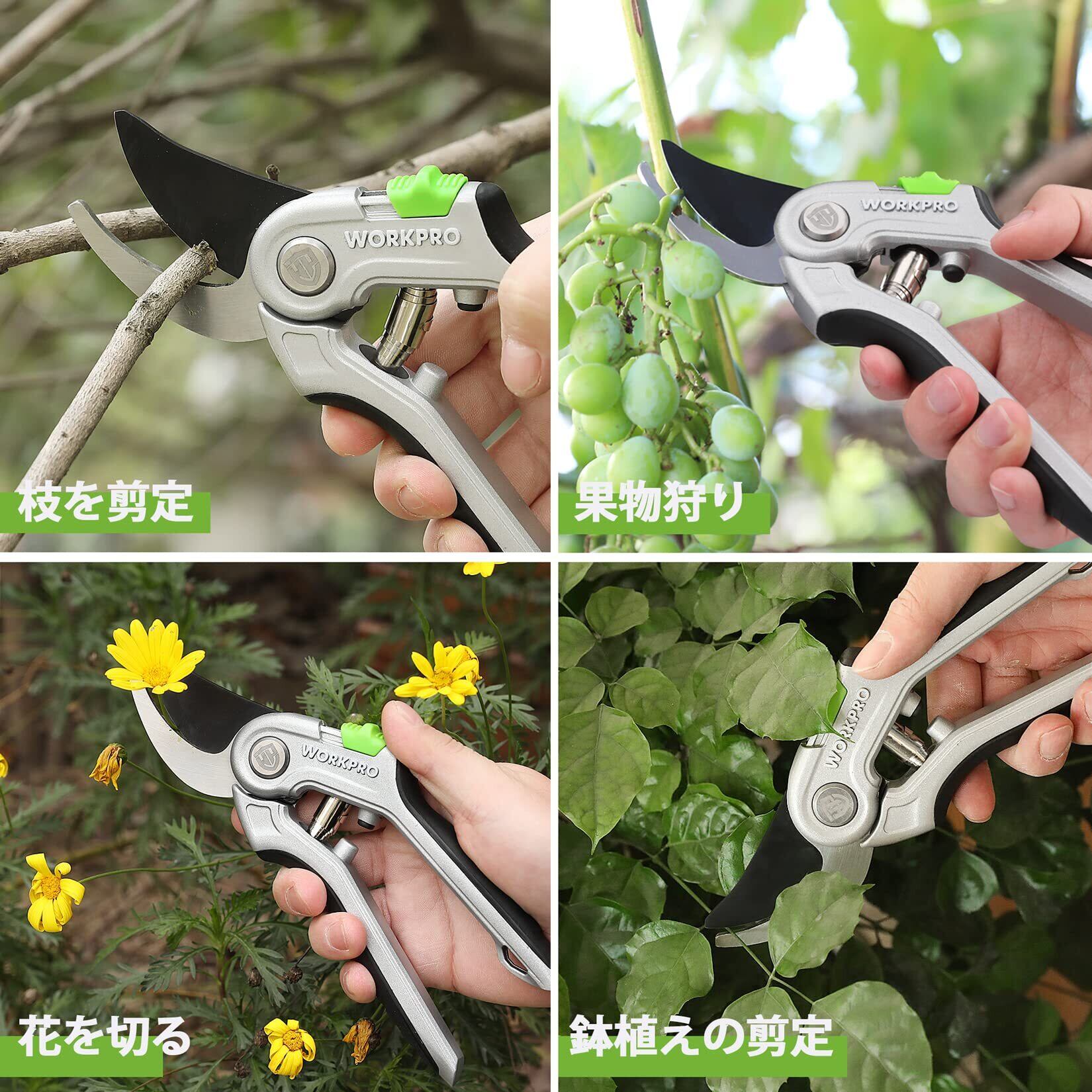 WORKPRO 剪定バサミ 剪定鋏 園芸用はさみ バイパスタイプ ステンレススチール刃 全長215mm 軽量化アルミハンドル 握りやすい 枝切り 園芸 盆栽 果樹 庭木 庭園作業 ガーデニング