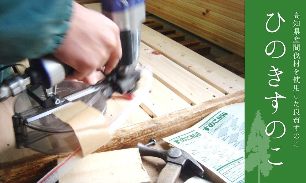 輸入材は一切使わず、自然豊かな高知県で育った良質の「ひのき間伐材」中心のこだわりぬいた材料