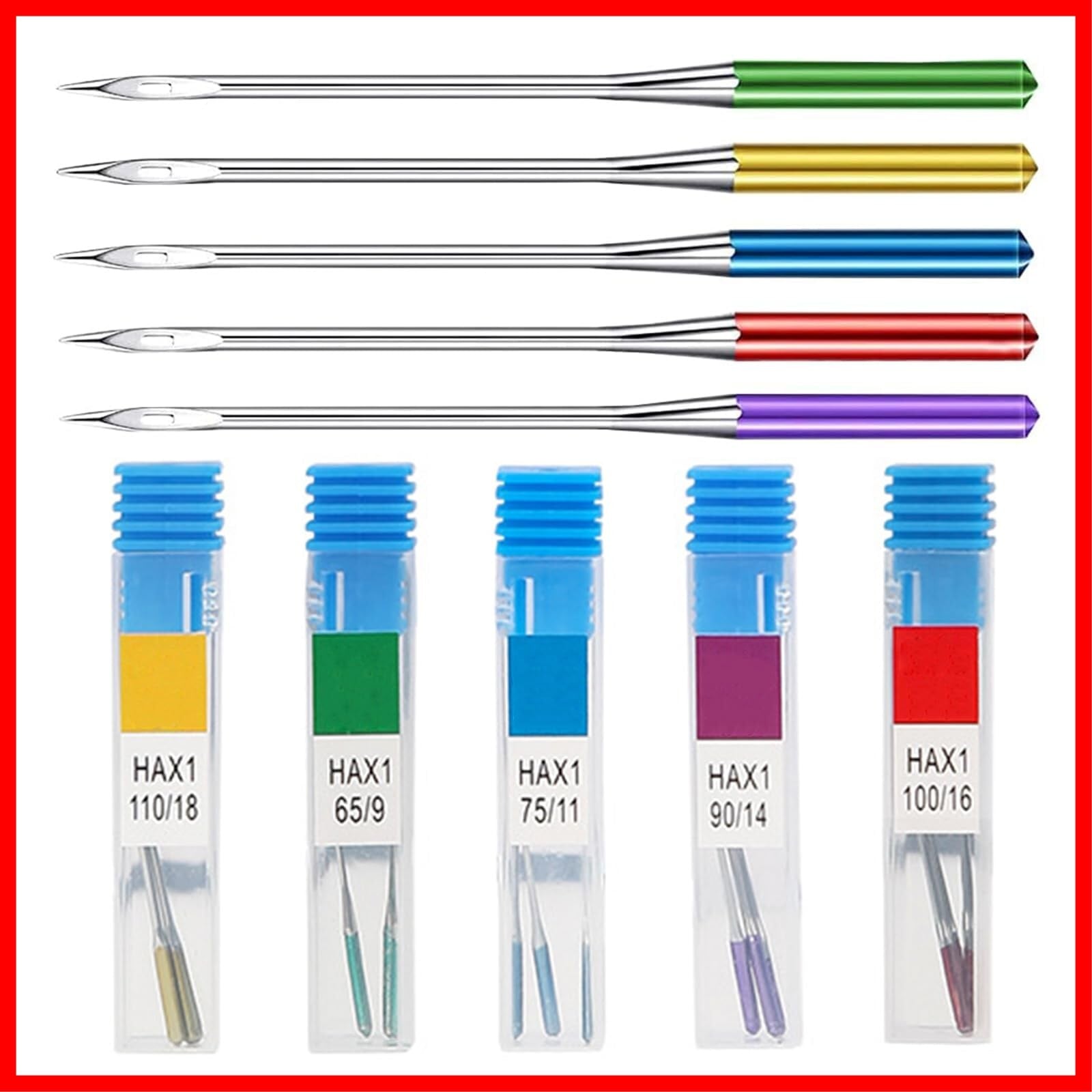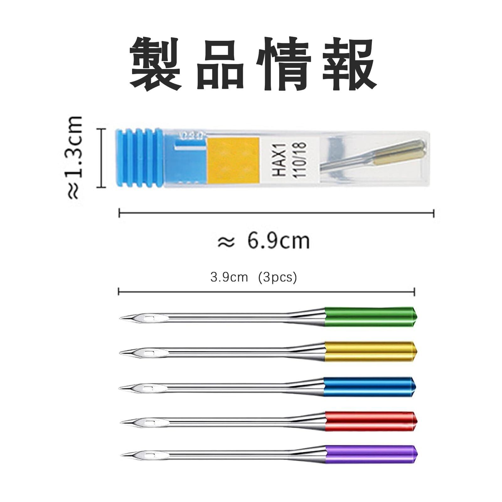 【製品仕様】:ミシン針5サイズ 素材:クロームメッキステンレス鋼 カラー:赤/黄色/青/緑/紫