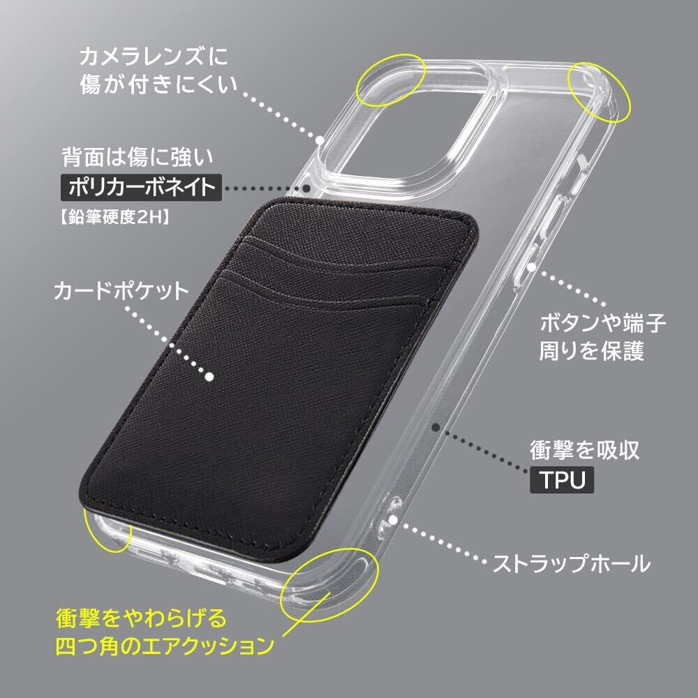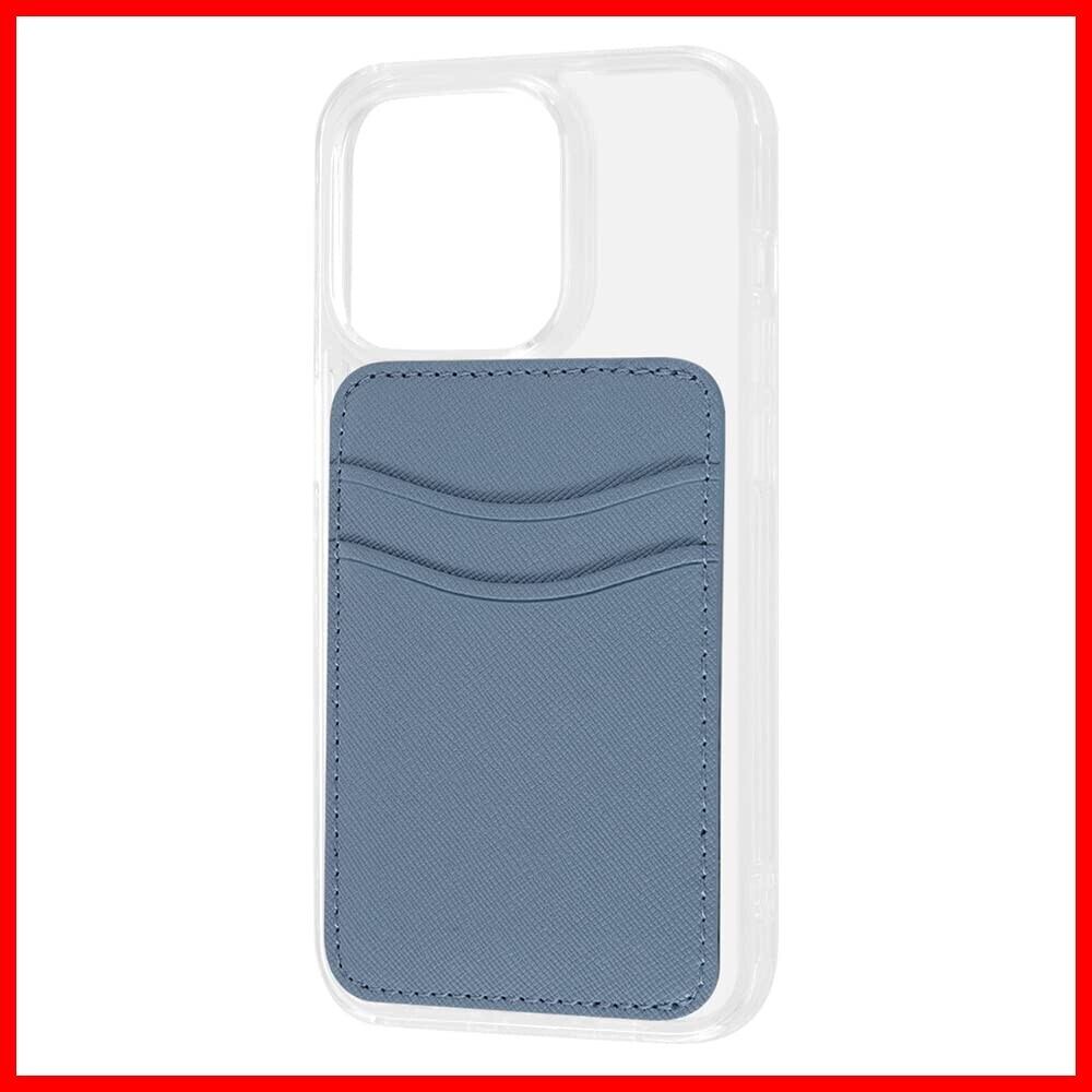 [caset] iPhone 14 Pro カードポケット 付き ケース クリア 耐衝撃 アイフォン マグネット無し 貼り付け カードホルダー 付き カバー (カードケース ブルー/ケース クリア)
