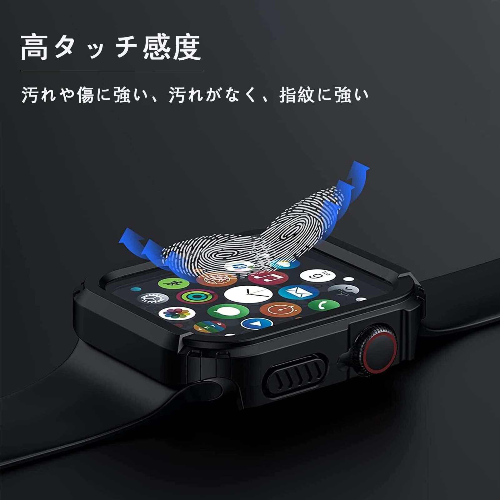 AMAPC for Apple Watch ケース 45mm 41mm 防水ケース IP68完全防水 バンド 水泳・スポーツ専用 ガラスフィルム 一体型 apple watch 用 カバー アップルウォッチ ケース 全面保護 耐久性 傷防止 Apple Watch 9/8/7 45mm対応 ブラック
