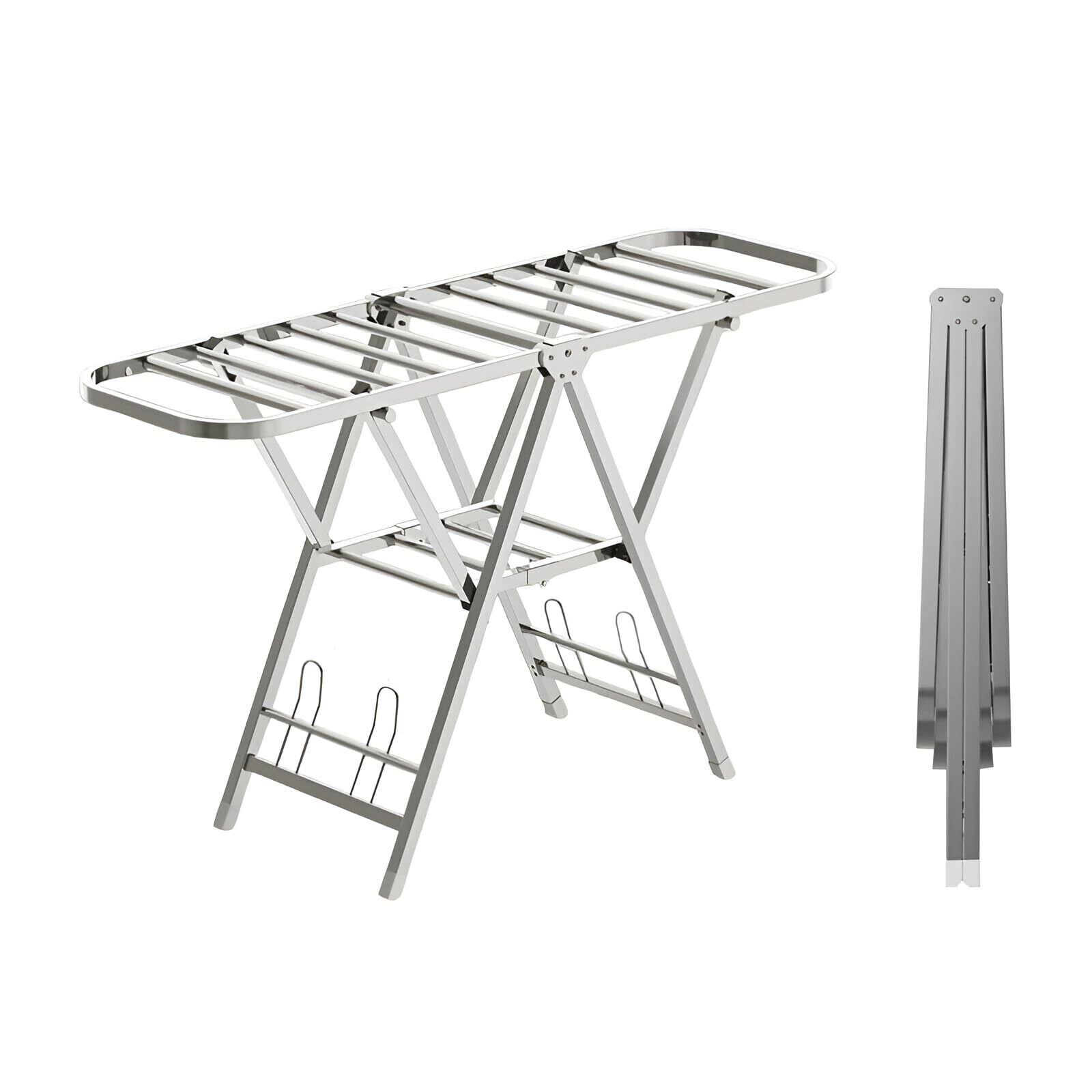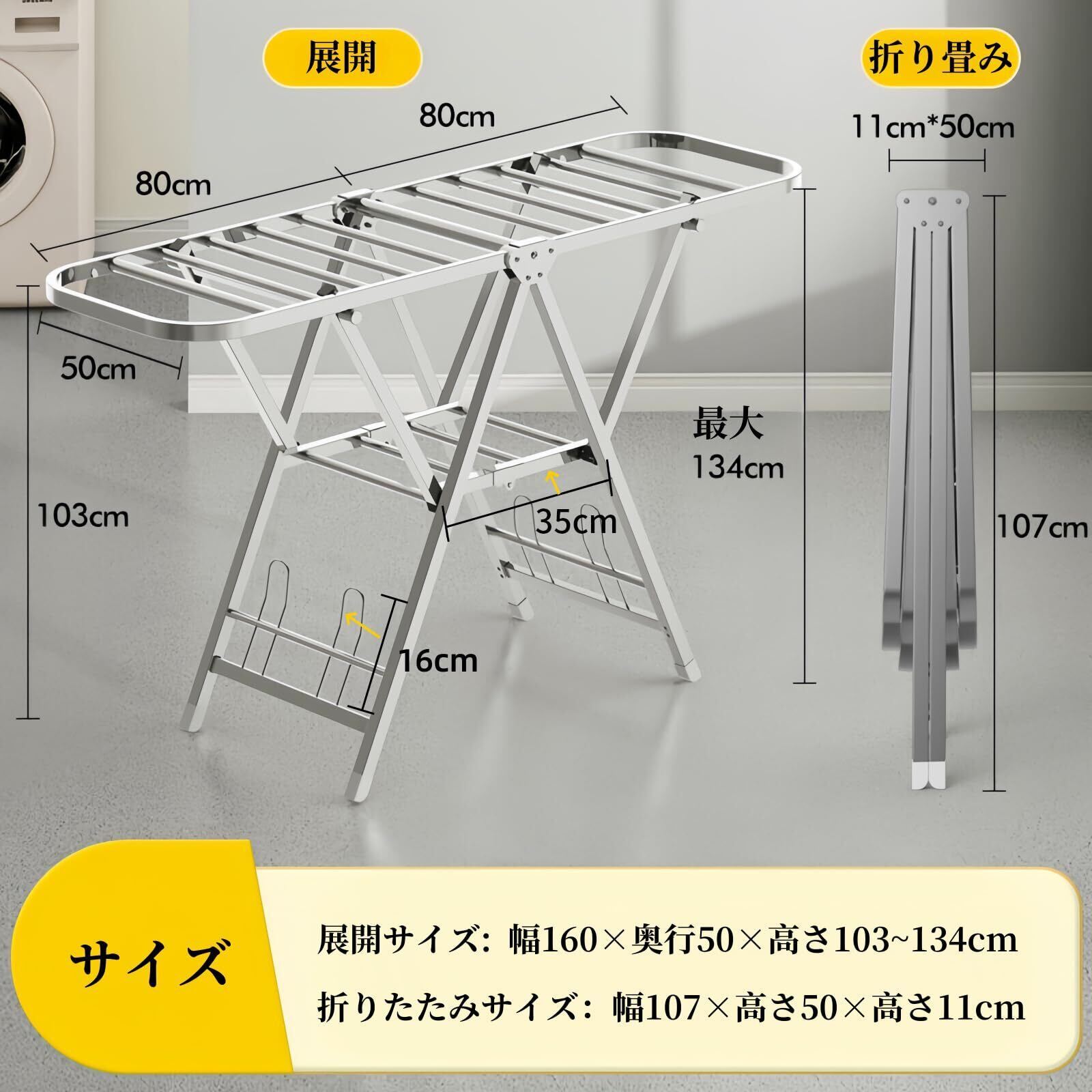 Aikenn 物干しスタンド 物干しラック 物干し竿 洗濯物干し 布団干し 室内 屋外 ベランダ コンパクト 洗濯干し台 高さ調節 折り畳み式 キャスター付き 靴掛け付き 組立不要 物干しハンガー タオルハンガー ステンレス製 頑丈 錆びにくい 花粉/梅雨対策 洗濯乾燥 幅160cm