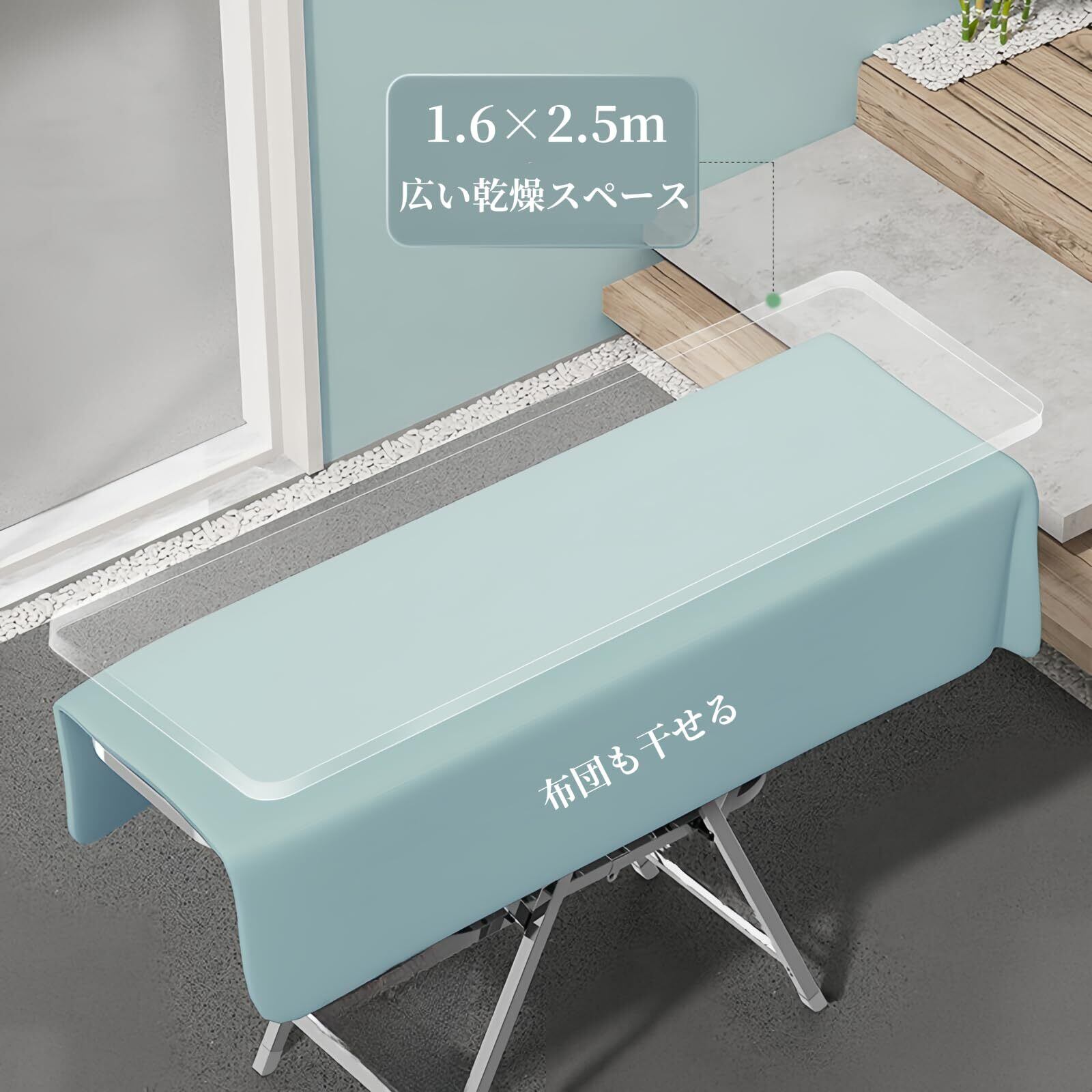 【組立不要・折り畳み式】組立いらず、パッと開いて、すぐ使える便利な物干しラックです。使わないときはコンパクトに折りたためて、スペースを取らず、隙間に収納可能。