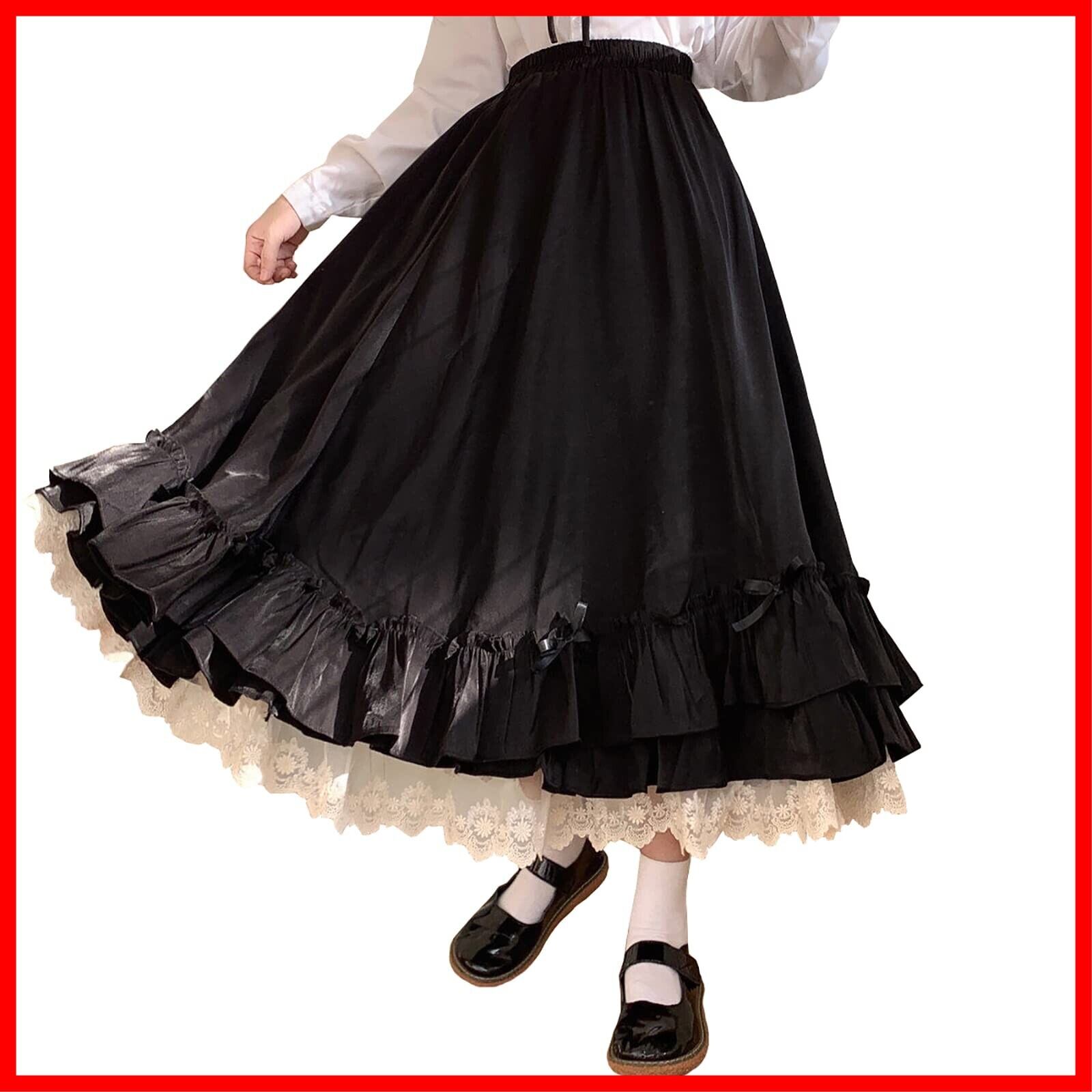 [Misswdd] スカート プリーツスカート レース柄 スクールスカート ハイウエスト ロリータ フリル 量産型 クラシカル プリンセス ウェストゴム 学院風 Aライン ふわふわ