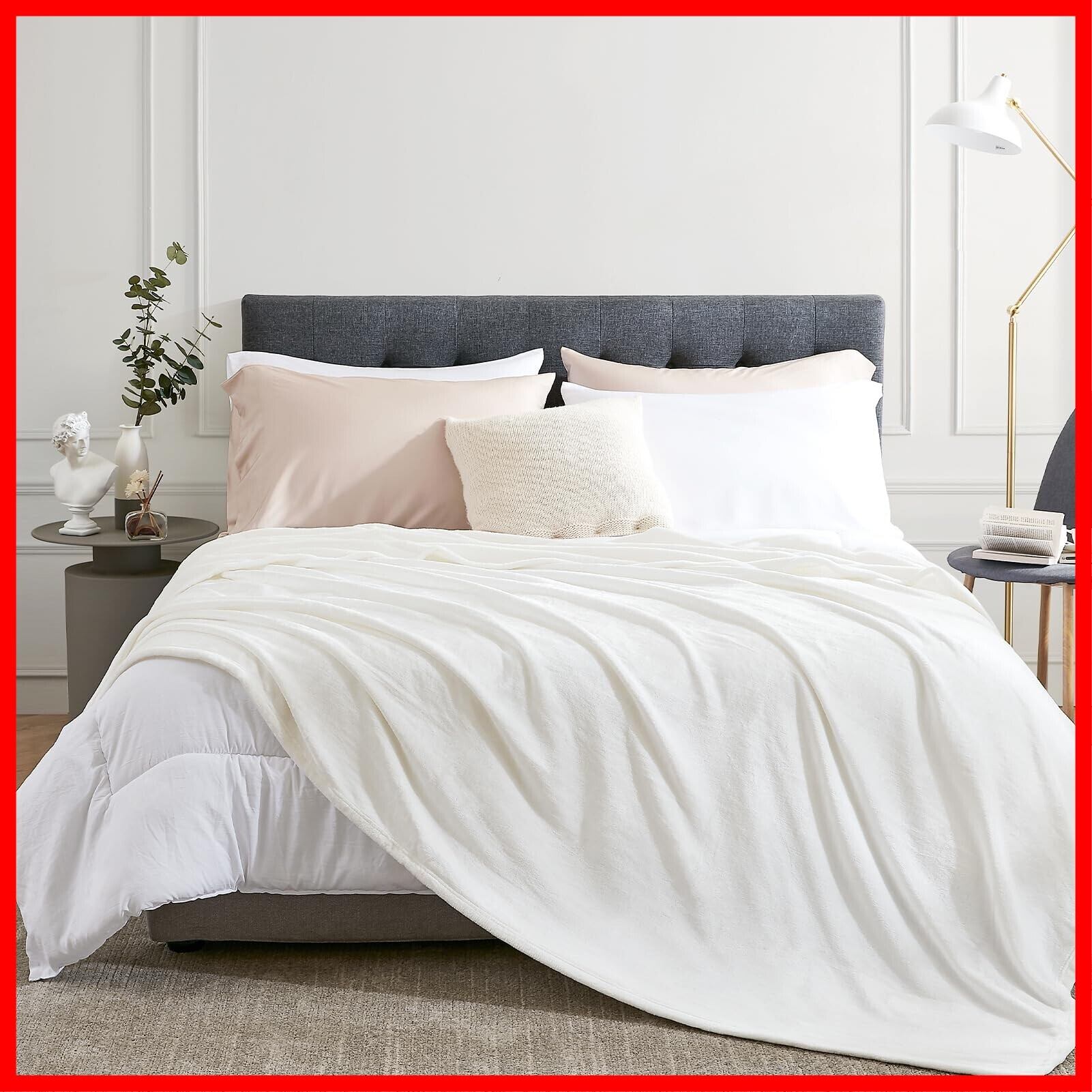Hansleep 毛布 もうふ 夏用 ダブル ブランケット 大きめ 200x220cm 大判 ホワイト マイクロファイバー 柔らかく 肌触り フランネル 洗える 軽量 静電防止 四季適用 (200x220,ホワイト)