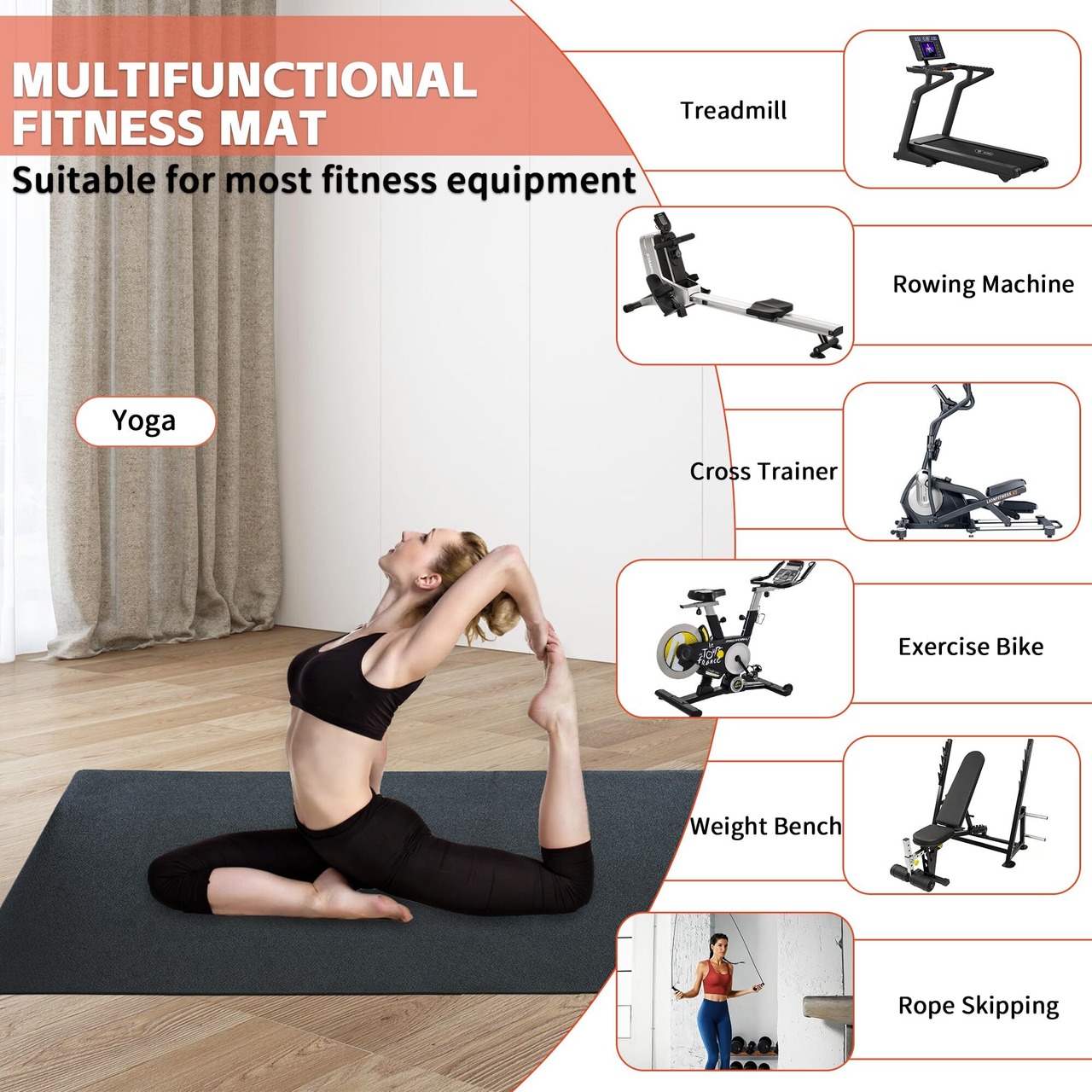 【多用途エクササイズ用マット】このスポーツマットは、室内トランポリン、ヨガ、モンキーバーなどのさまざまなスポーツに適しているだけでなく、エアロバイク、トレッドミル、その他のスポーツ用品にも最適なマットです。 防水性、非吸収性、お手入れが簡単な特性により、フィットネス機器やトレーニング環境を清潔で衛生的に保ちながら床を保護し、さまざまなスポーツシーンで理想的な選択肢となります。