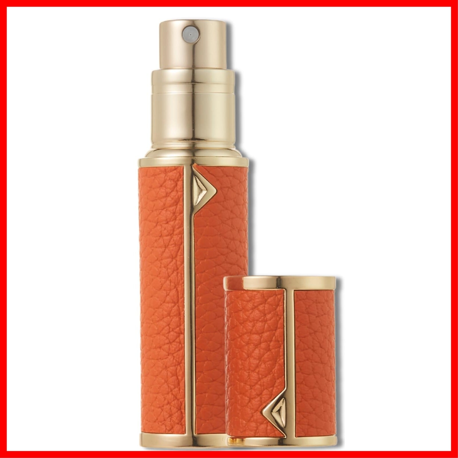 AlxMuNao アトマイザー 香水【5ml・ワンタッチ補充・携帯用】プレミアムレザー仕様 底部充填 詰め替え簡単 漏れない 持ち運び便利 コンパクト 小分けボトル 旅行 デート 仕事 男女兼用 (オレンジ) | hananoki