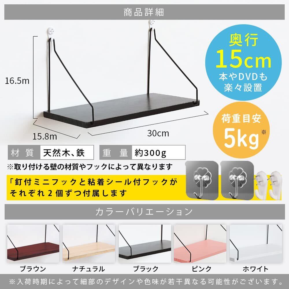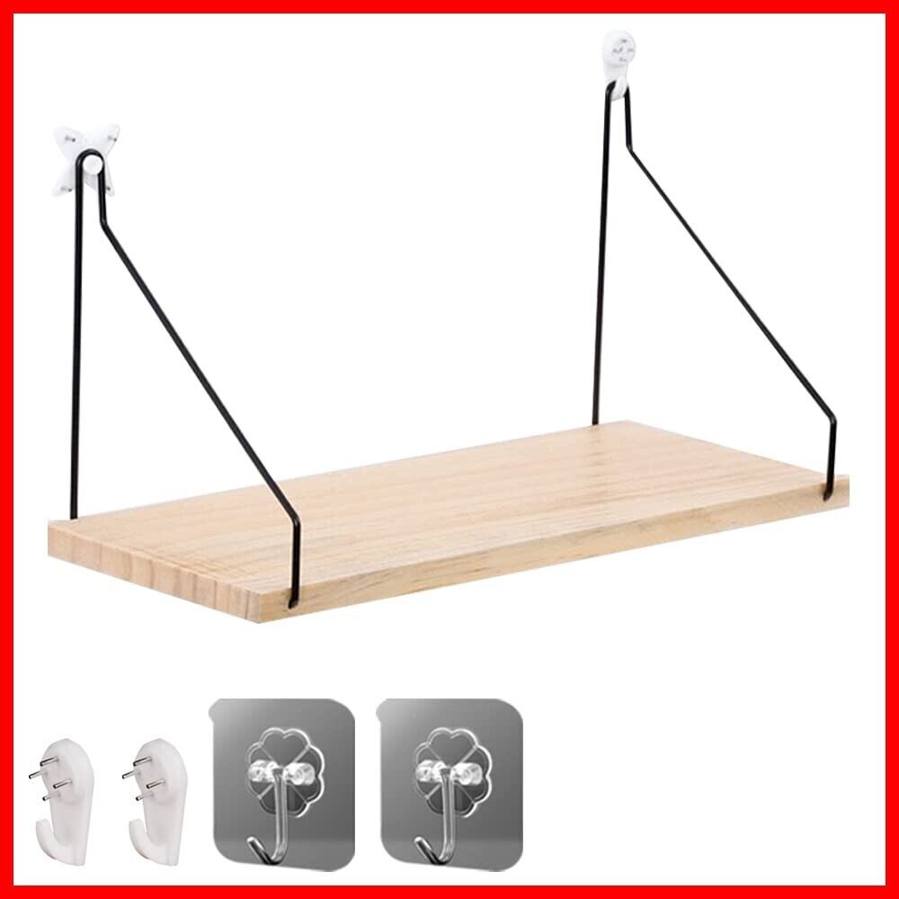 PENGUINFLY ウォールシェルフ 壁掛け棚 フック付 壁 棚 壁を傷つけない ウォールラック 本棚 賃貸 穴開けない 白 おしゃれ (Natural)