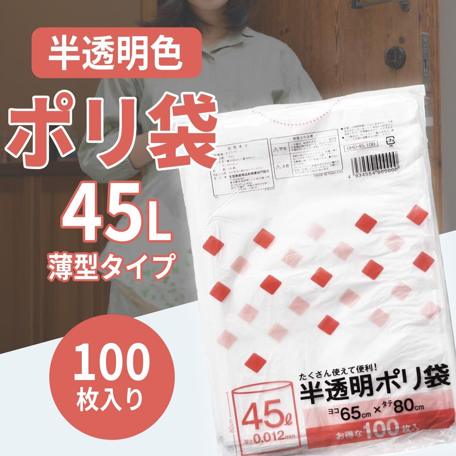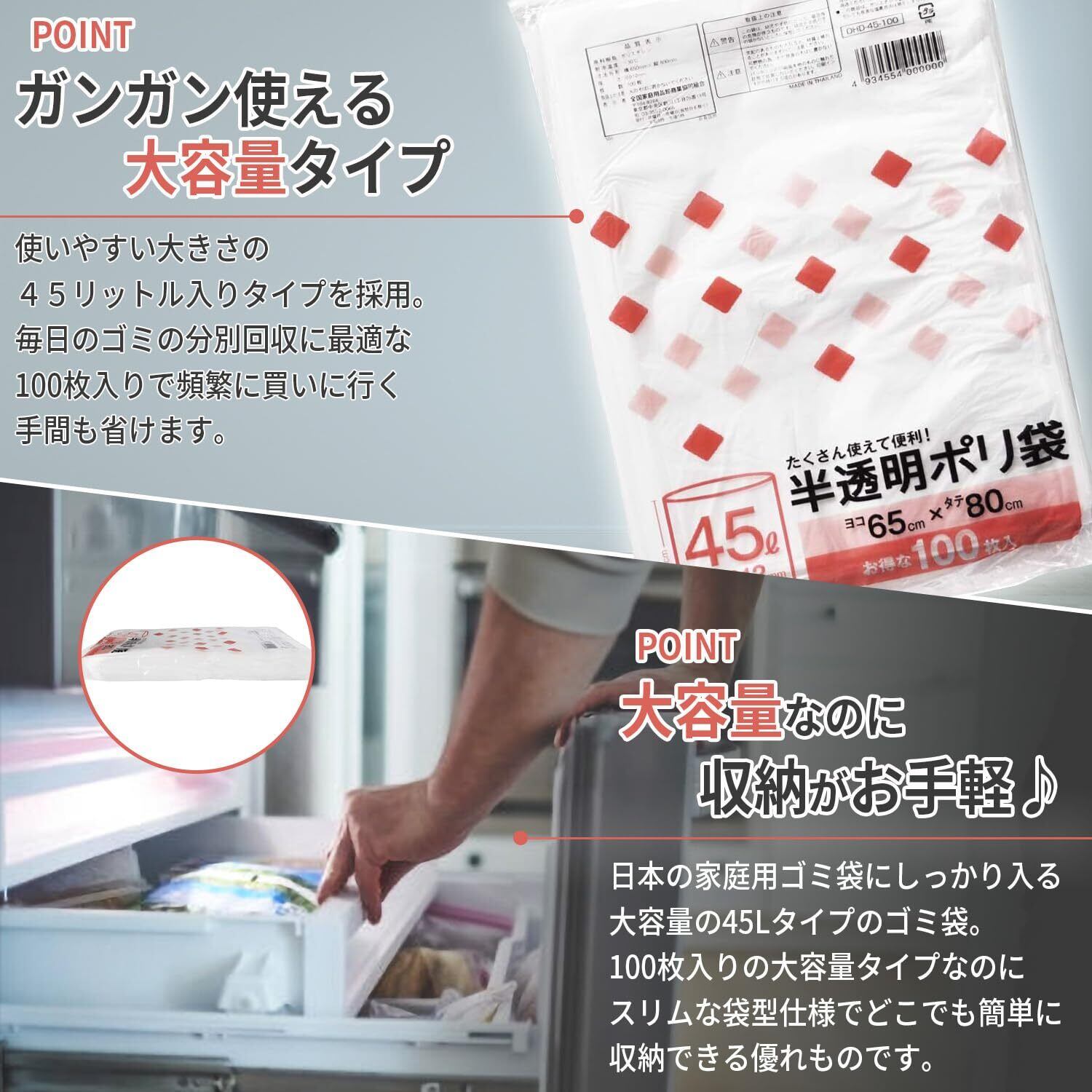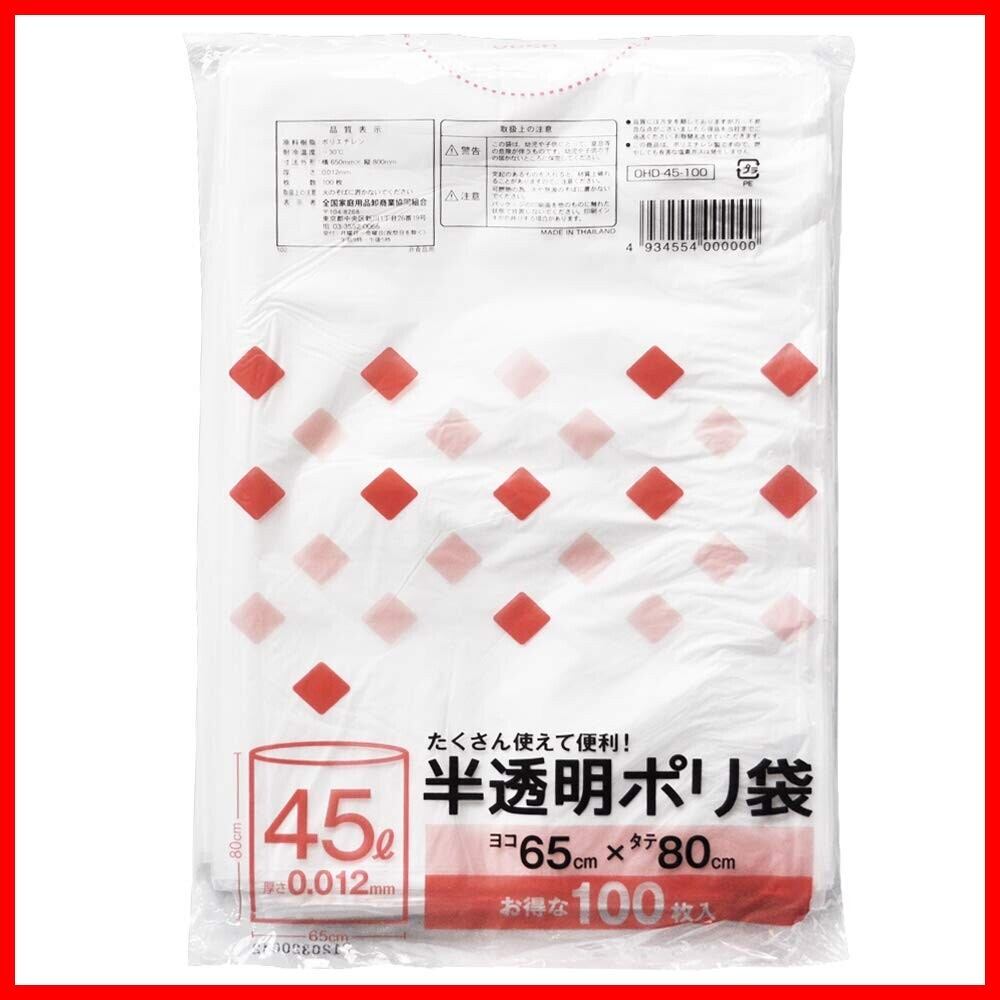 全家協(Zenkakyo) 半透明 ゴミ袋 ポリ袋 45L 100枚 65×80cm 0.012mm OHD-45-100