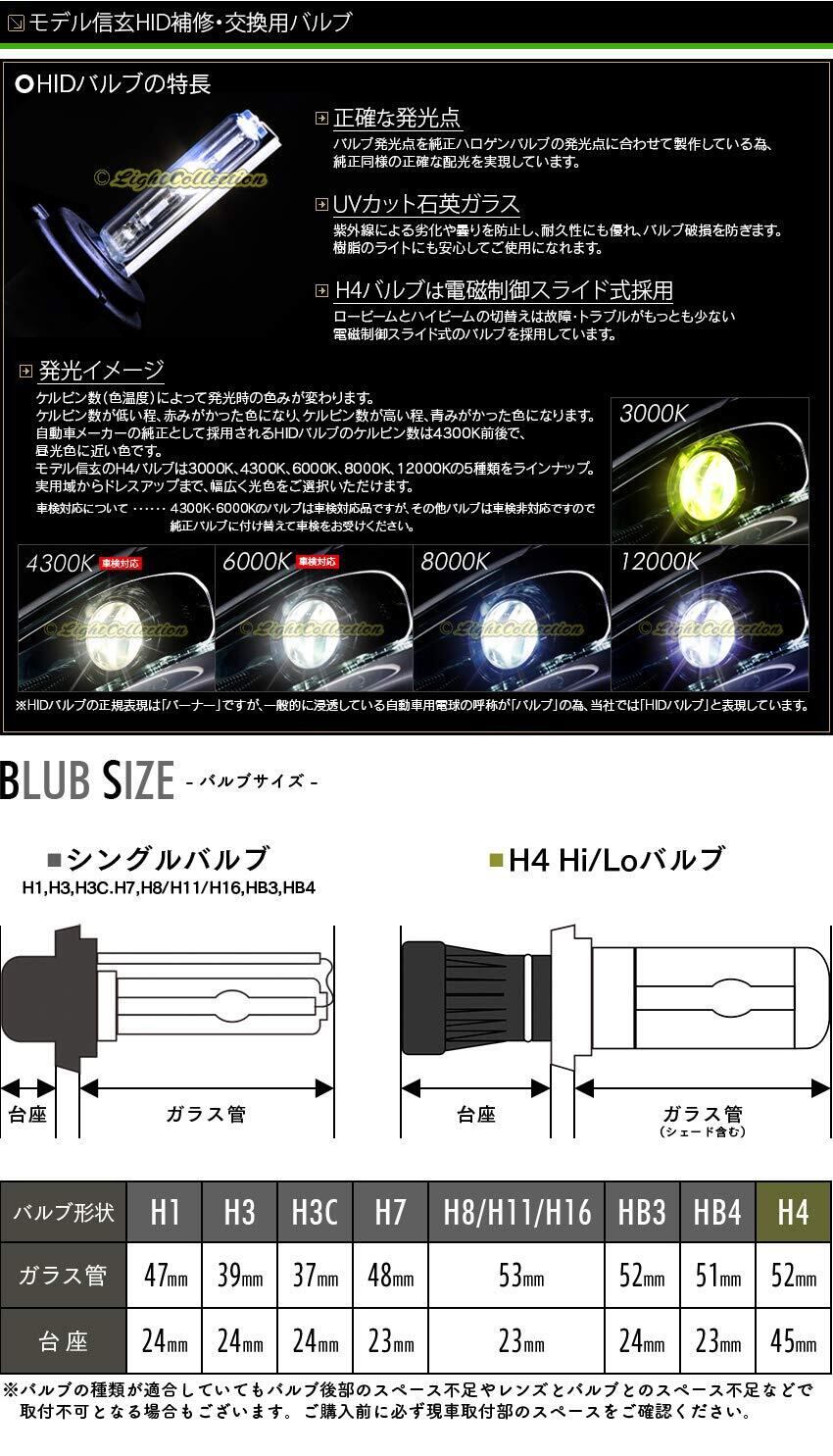信玄 交換用 HIDバルブ HB4 8000K 35W 55W 兼用 2本セット 交換 補修に